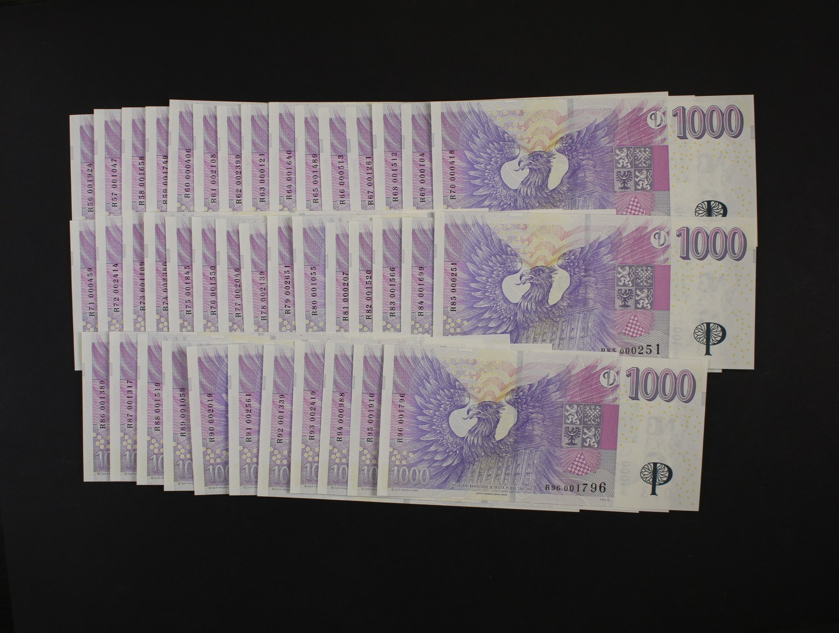 • 1000 Kč 2023 kompletní sada sérií R 01 - R 96 pamětní s přítiskem ČNB 30 LET Kč 1993 - 2023, 96 kusů