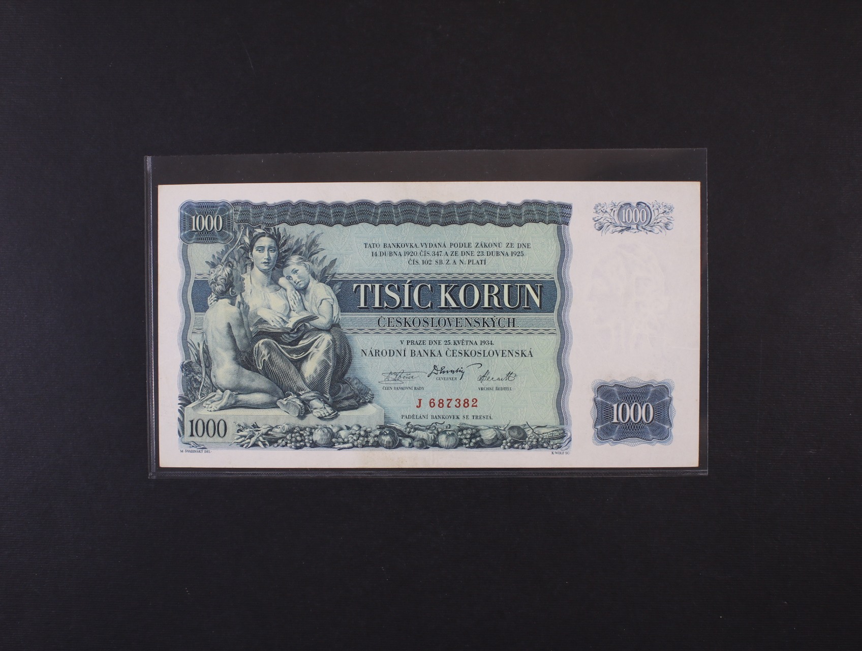 • 1000 Kč 25.5.1934 série J, Ba. 27, Pi. 26a