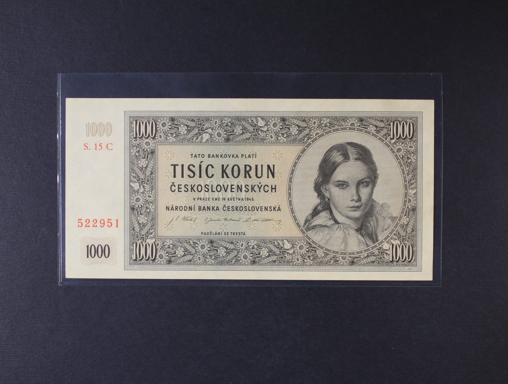 1000 Kčs 16.5.1945 série 15 C, Ba. 78b, Pi. 74a