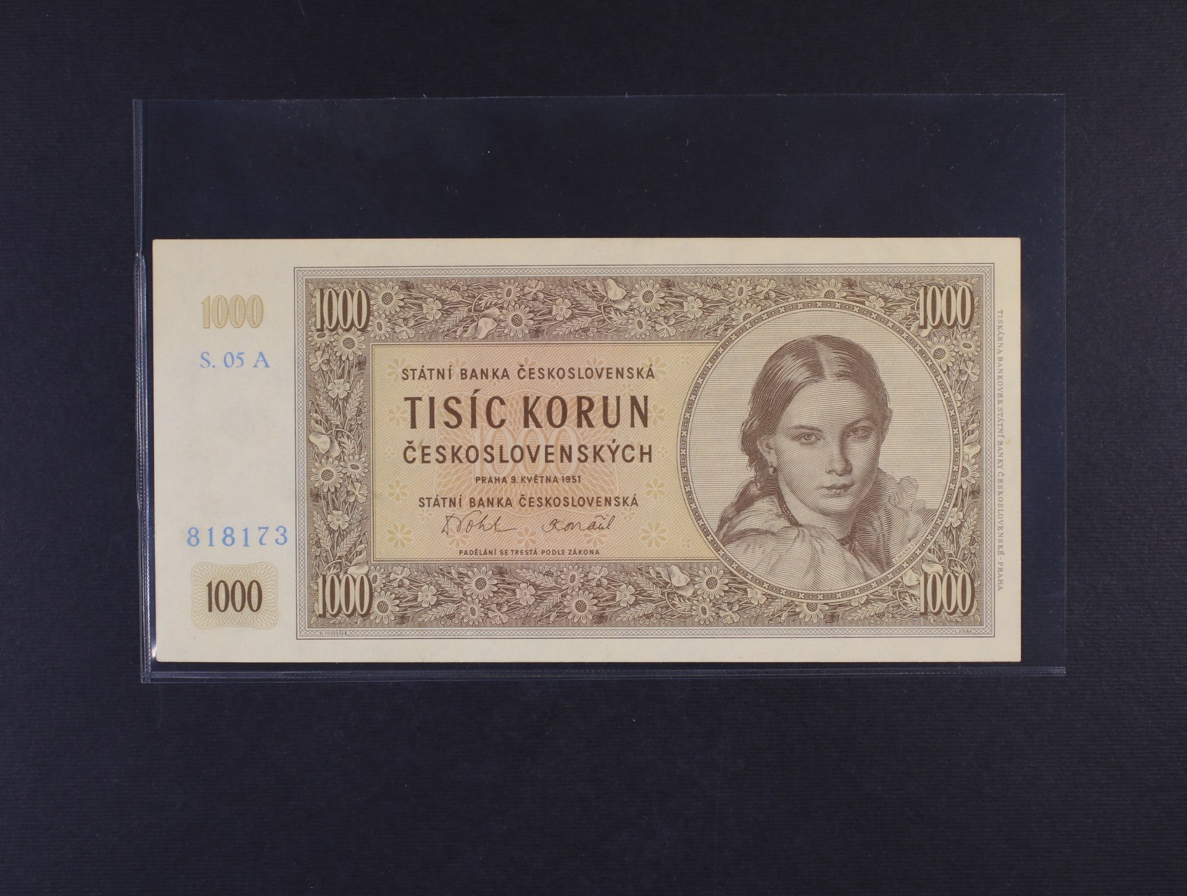 1000 Kčs 9.5.1951 série 05 A nevydaná, původní exemplář, Ba. N9, Pi. 77