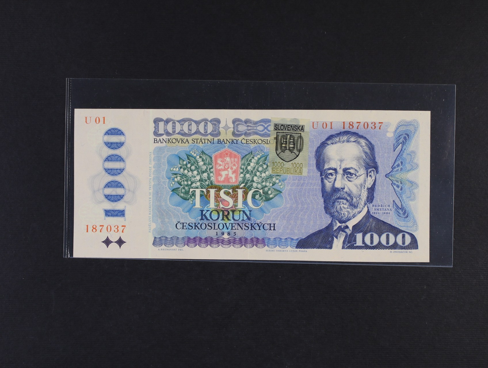 • 1000 Kčs/Sk 1985/93 série U 01 kolkovaná, Ba. SK 5, Pi. 19, první série