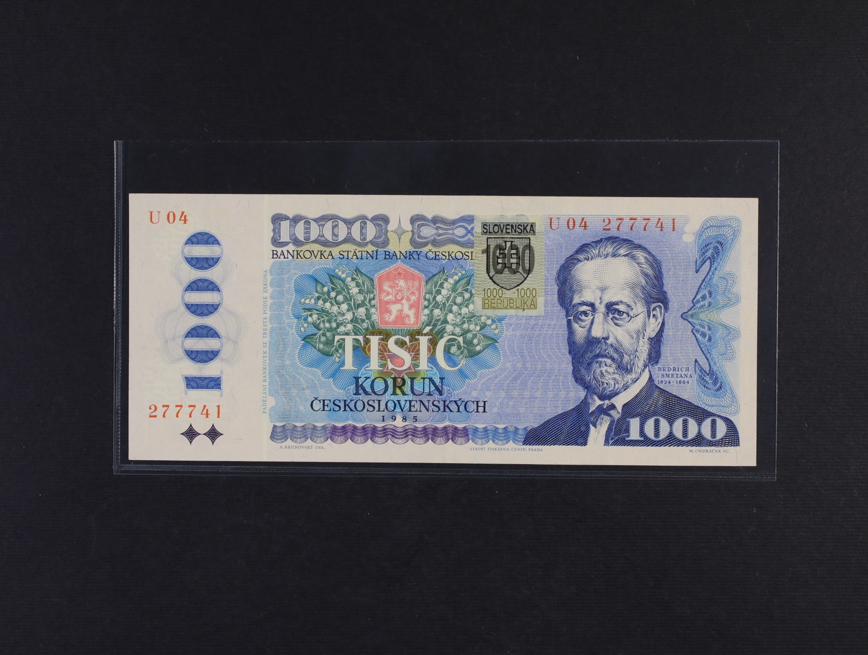 1000 Kčs/Sk 1985/93 série U 04 kolkovaná, Ba. SK 5, Pi. 19