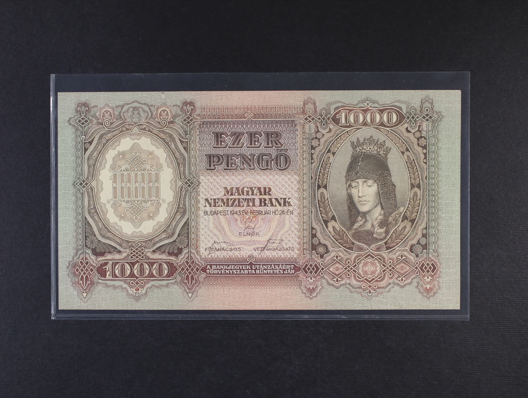 • 1000 Pengö 24.2.1943 série F 079, platná na ČS území,  Pi. 116, Ba. H 12