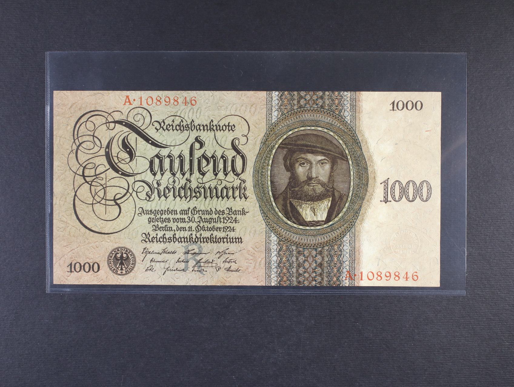 1000 Rm 11.10.1924 série A, podtisk. písmeno R, platná na ČS území, Ro. 172a , Pi. 179, Ba. D9, Grab. DEU-178a