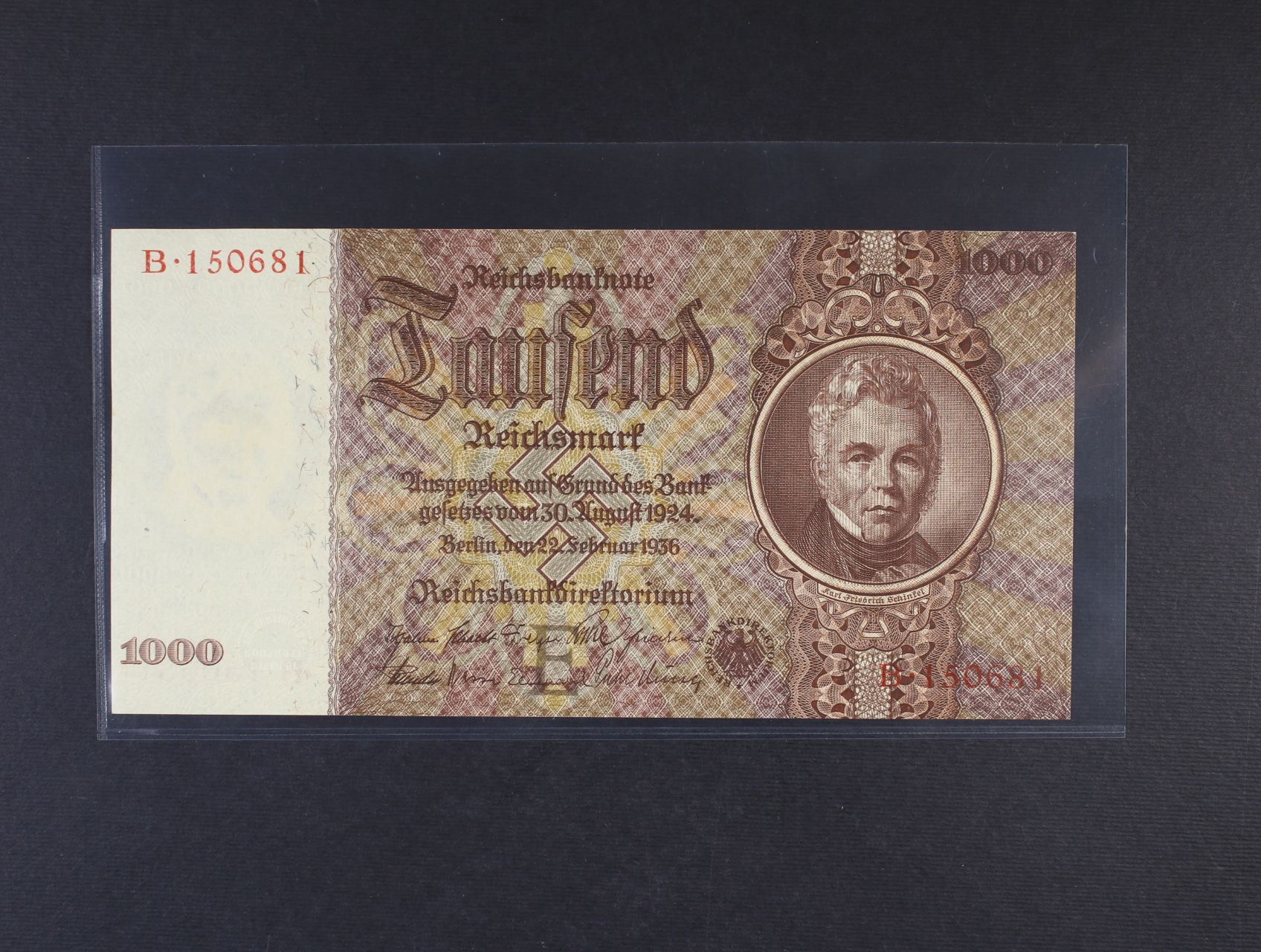 1000 RM 22.2.1936 série B, podtisk. písmeno E, platná na ČS území, Ro. 177 , Pi. 184, Ba. D10, Grab. DEU-212