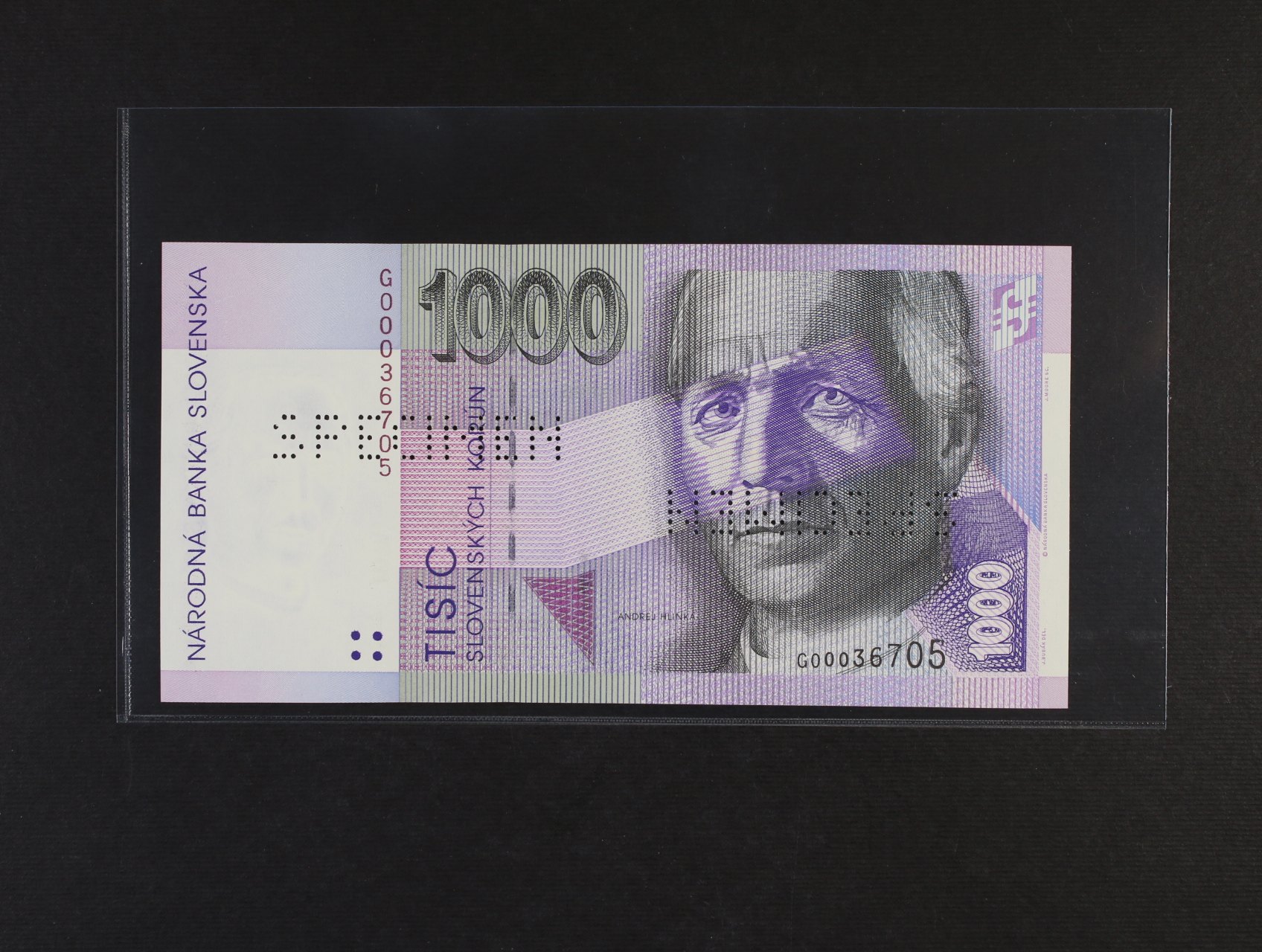 • 1000 Sk 1.10.1993 série G s 2x vodorovnou zrcadlově perf. SPECIMEN, Ba. SK 26