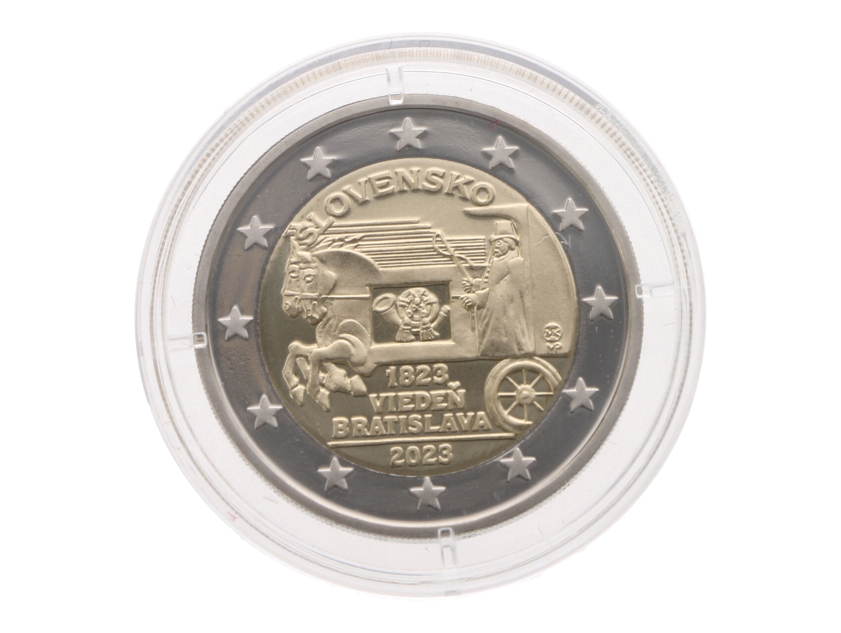 • 2 Euro 2023 200. výročí koňské pošty Vídeň - Bratislava, kvalita proof, etue, certifikát, N SKE 26, Aur. S126