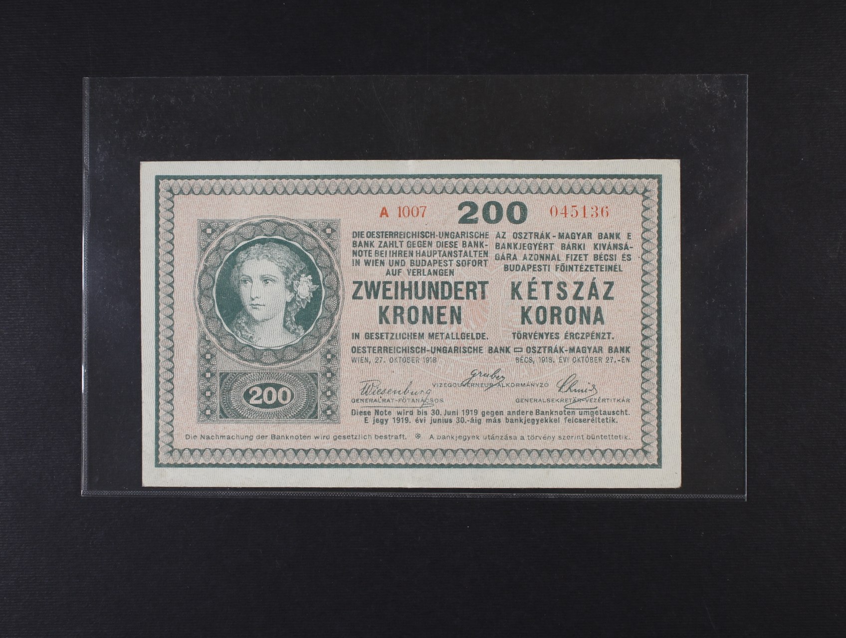 • 200 K 27.10.1918 série A 1007, bez rastru na R, Ri. 445, Ba. RU 13a, He. RU 18a
