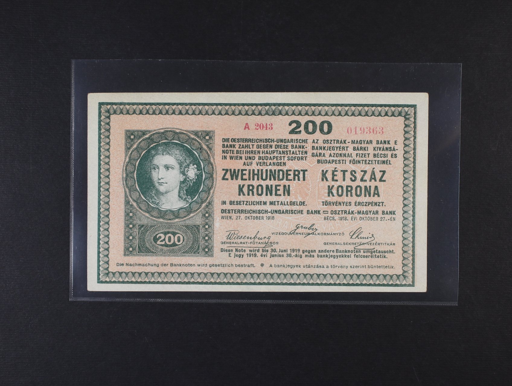 200 K 27.10.1918 série A 2043 s rastrem na R, Maďarská republika rad, Ri. 449b, He. RU 18 MRRa