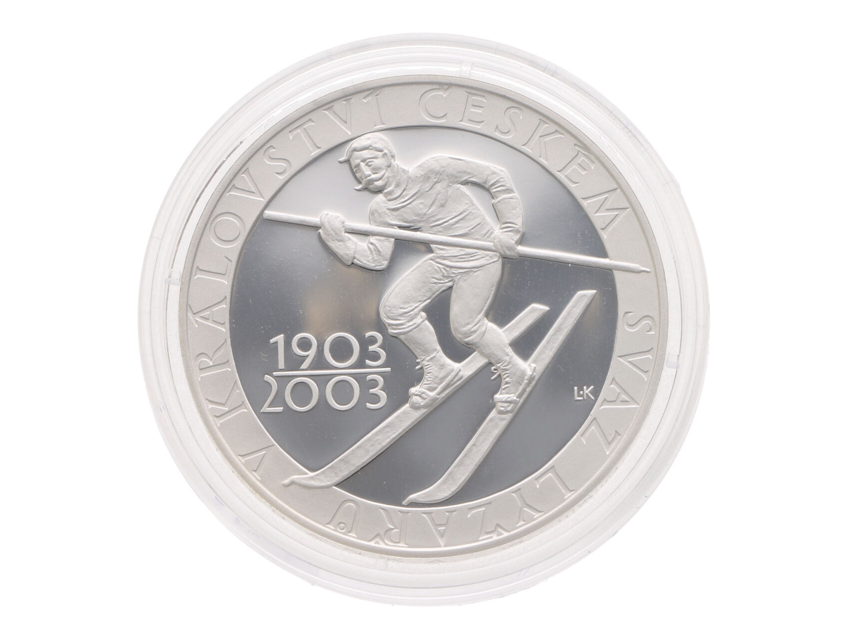 200 Kč 2003 - 100. výročí ustavení Svazu lyžařů v Království českém, kvalita proof, etue, certifikát, N 42
