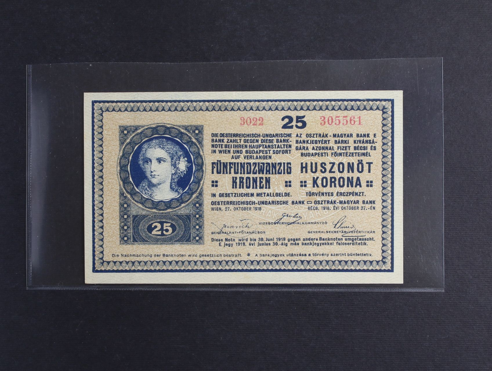 25 K 27.10.1918 série 3022 s rastrem na R, Maďarská republika rad, Ri. 448b, Pi. 12, He. RU17 MRRd