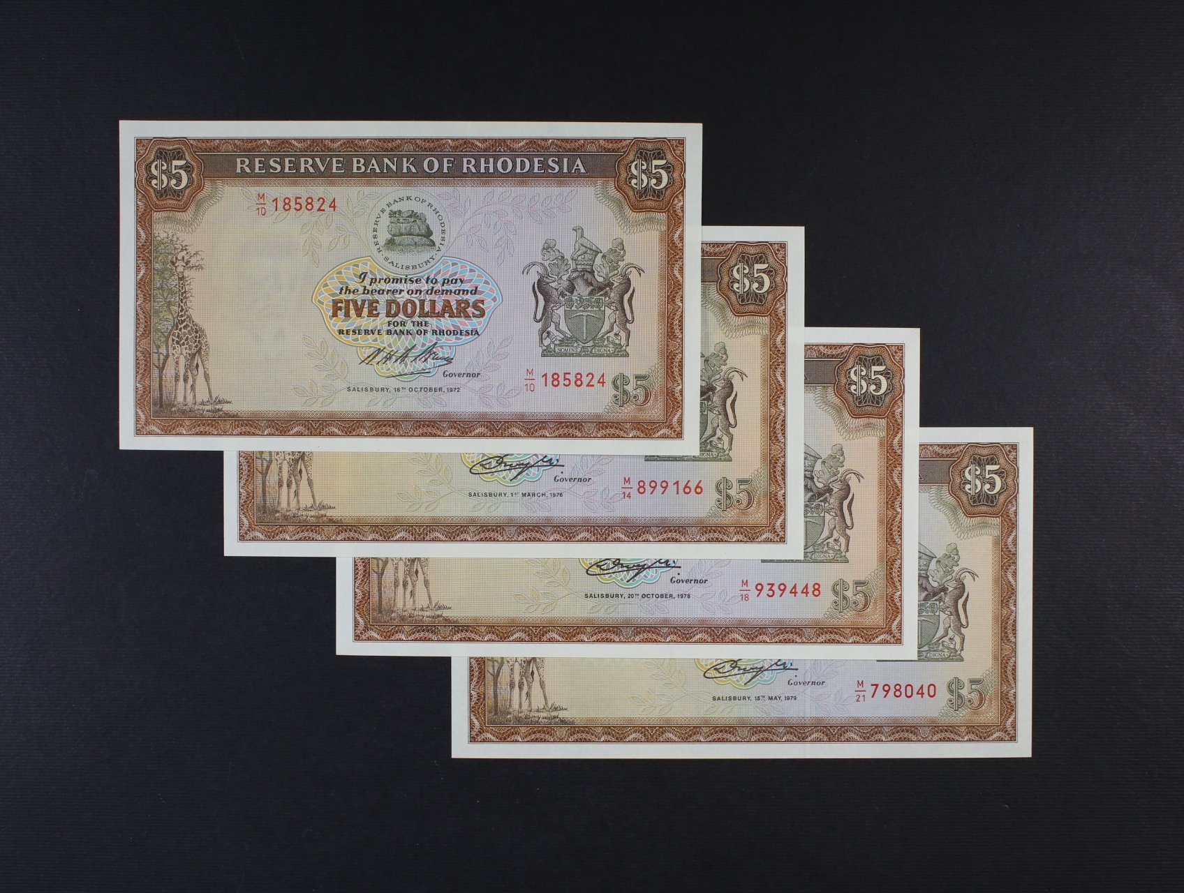 5 Dollars 1972 série M/10, 1976 série M/14, 1978 série M/18, 1979 série M/21, Pi. 32, 36, 40, BNB. B109a, b, c, d, 4 kusy