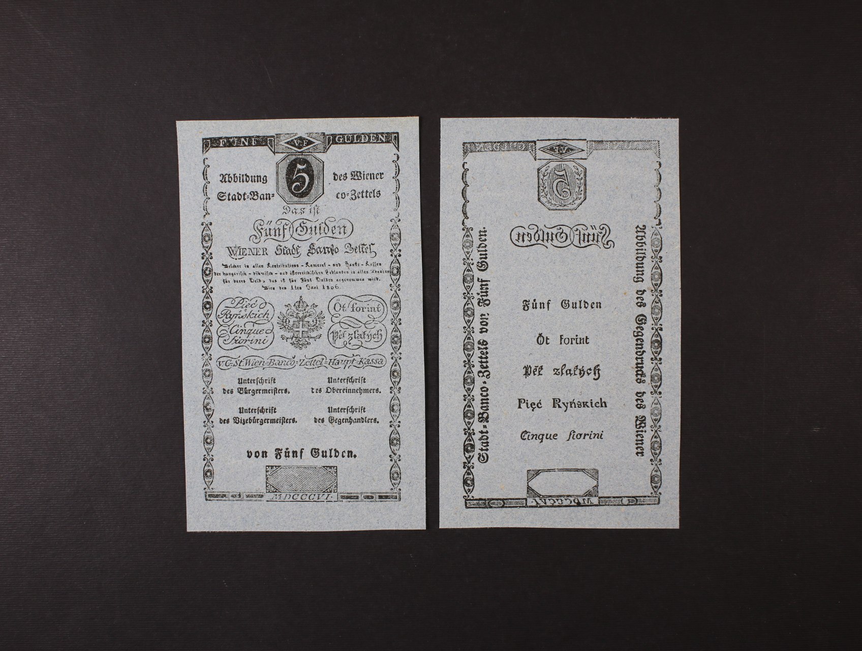 • 5 Gulden 1.6.1806 jednostranné formuláře, líc a rub zvlášt, Ri. 39 Ff, 2 kusy
