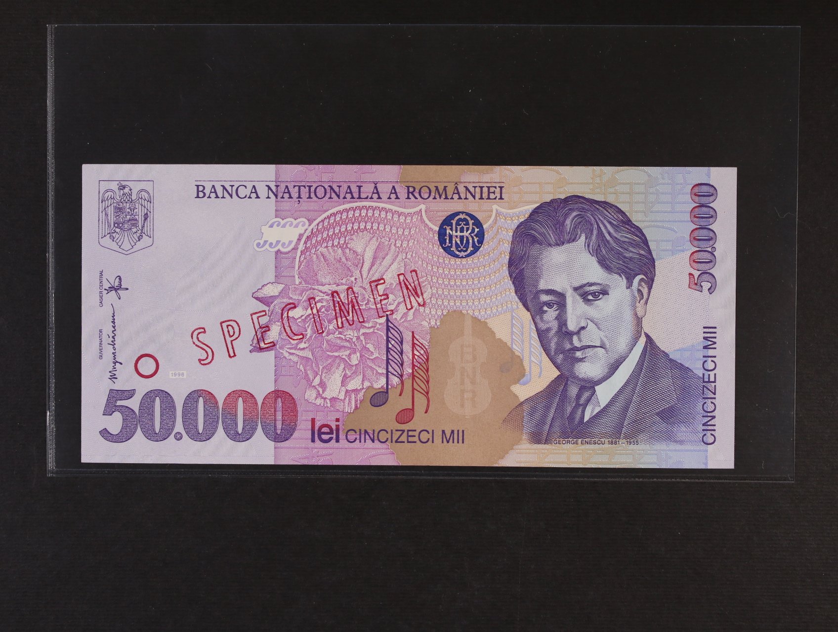 • 50.000 Lei 1996 anulát s přetiskem SPECIMEN, Pi. 109s, BNB. B269as1