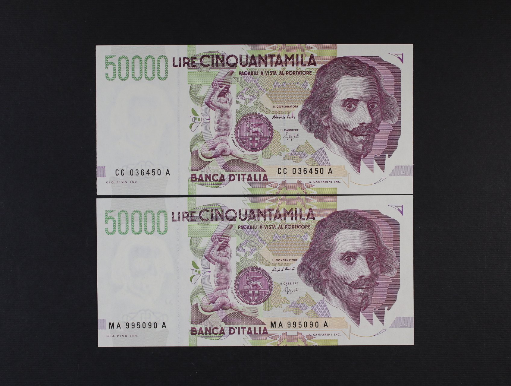 • 50.000 Lire 1992 série CC/A a MA/A varianty podpisů, Pi. 116, BNB. B467a, b, 2 kusy
