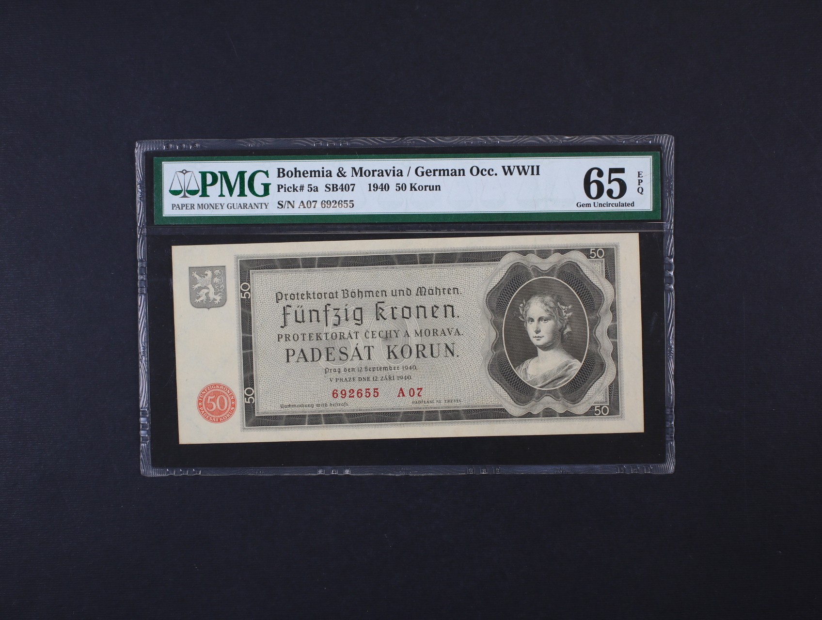 50 K 12.9.1940 série A 07, Ba. 34, Pi. 5a, PMG 65