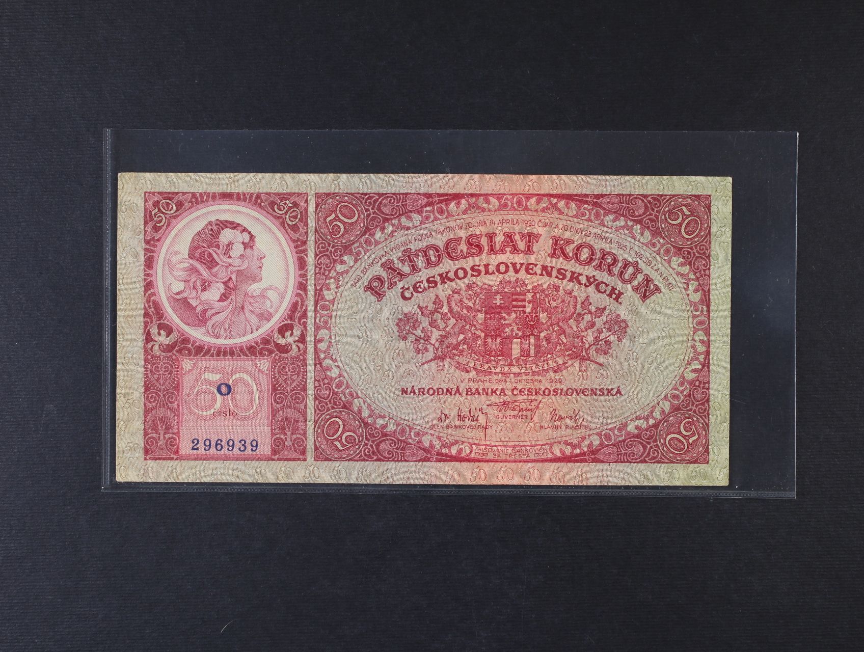 • 50 Kč 1.10.1929 série O, Ba. 24a1, Pi. 22a