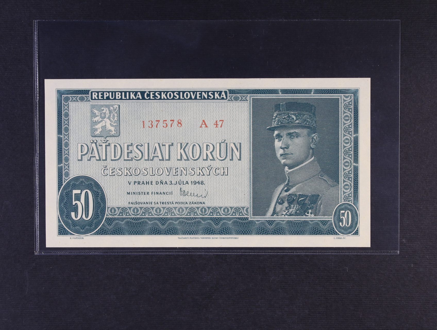 50 Kčs 3.7.1948 série A 47, Ba. 81b, Pi. 66a
