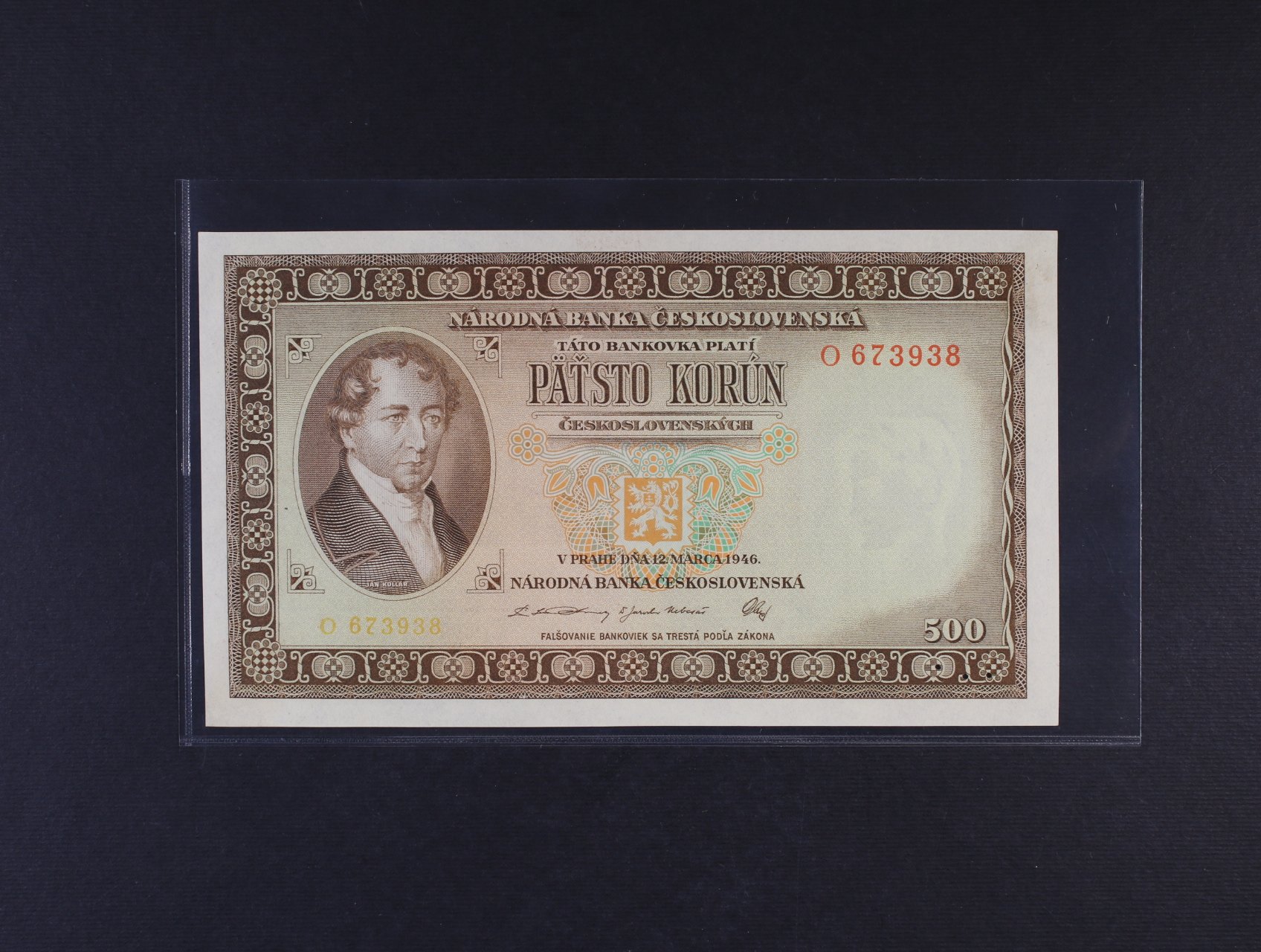 500 Kčs 12.3.1946 série O, Ba. 80a, Pi. 73a