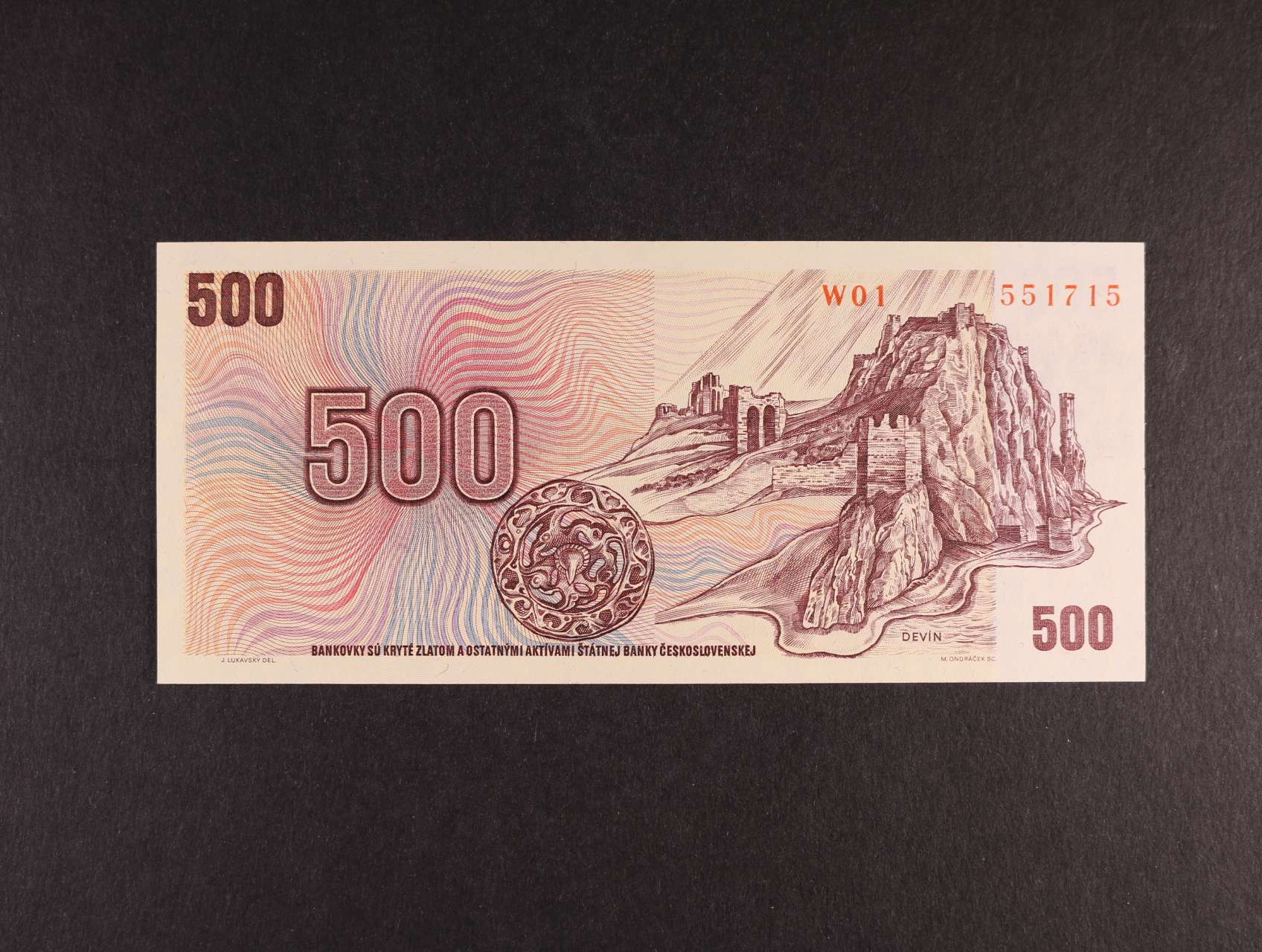• 500 Kčs/Kč 1973/93 série W 01 kolkovaná, Ba. CZ 2