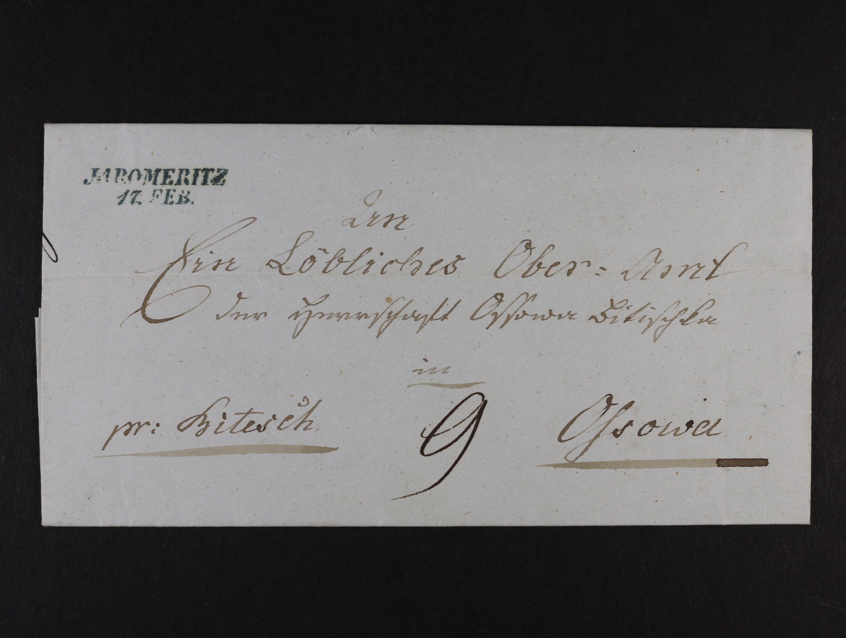 • skl. dopis z r. 1847 s pod. modrým řádkovým raz. JAROMERITZ 17.FEB., velmi dobrá kvalita