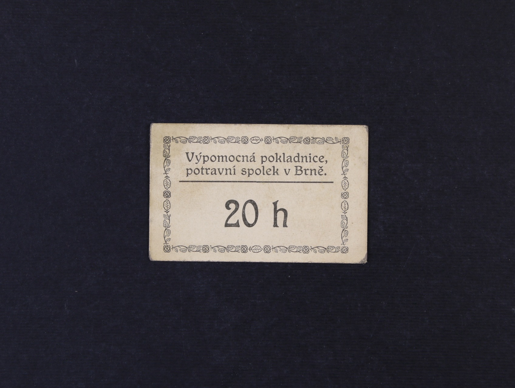 • Brno, 20 h b.d. Výpomocná pokladnice, potravní spolek v Brně, na R oválné raz., H.H. 16.4.2c