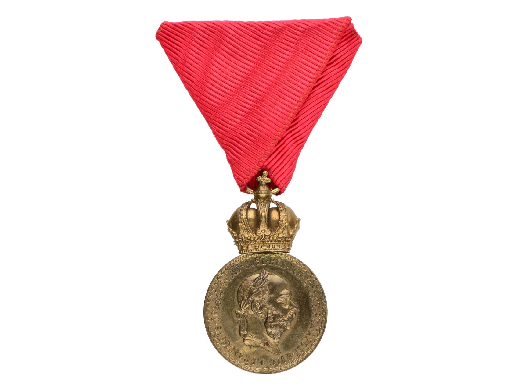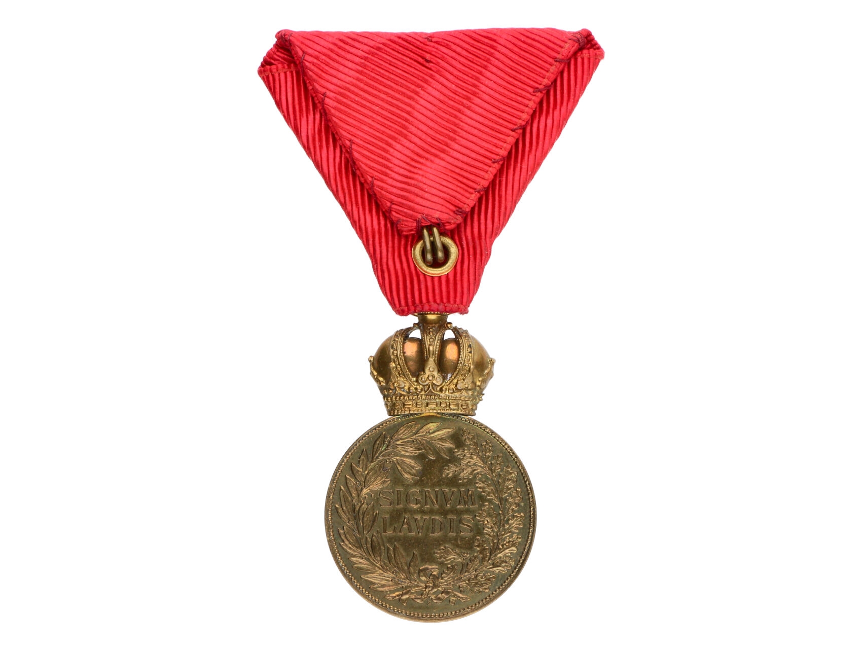 • Bronzová vojenská záslužná medaile Signum Laudis F.J.I., bronz, původní civilní stuha, Marko148a