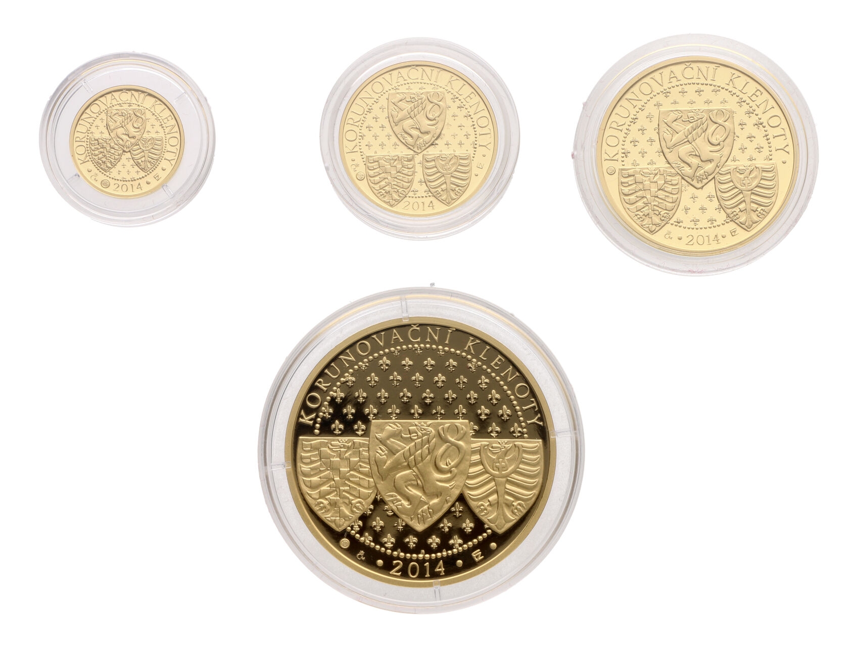 Česká republika 1993 - Česká mincovna, Zbyněk Fojtů - dukátová řada České republiky 2014, Korunovační klenoty, Au 999/1000, 1 D (3,11 g), 2 D (7,78 g), 5 D (15,56 g) a 10 Dukát (31,1 g), náklad 50 ks, etue, certifikát, kvalita proof