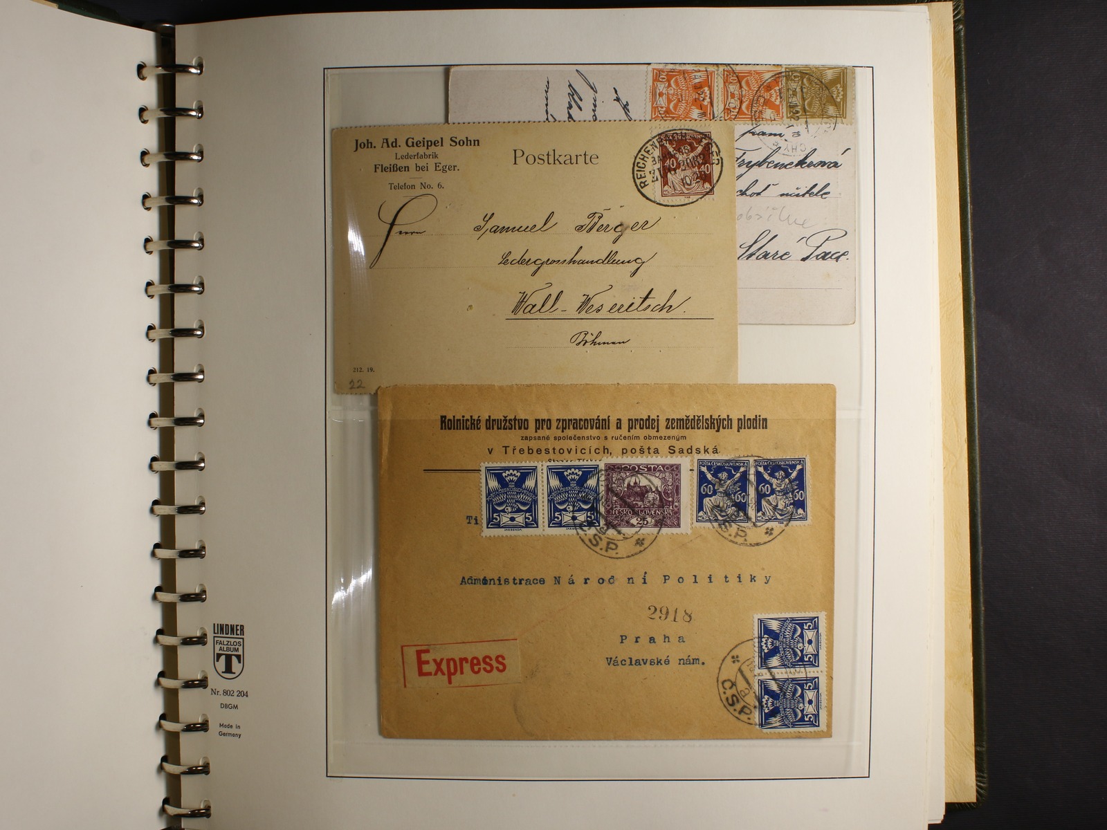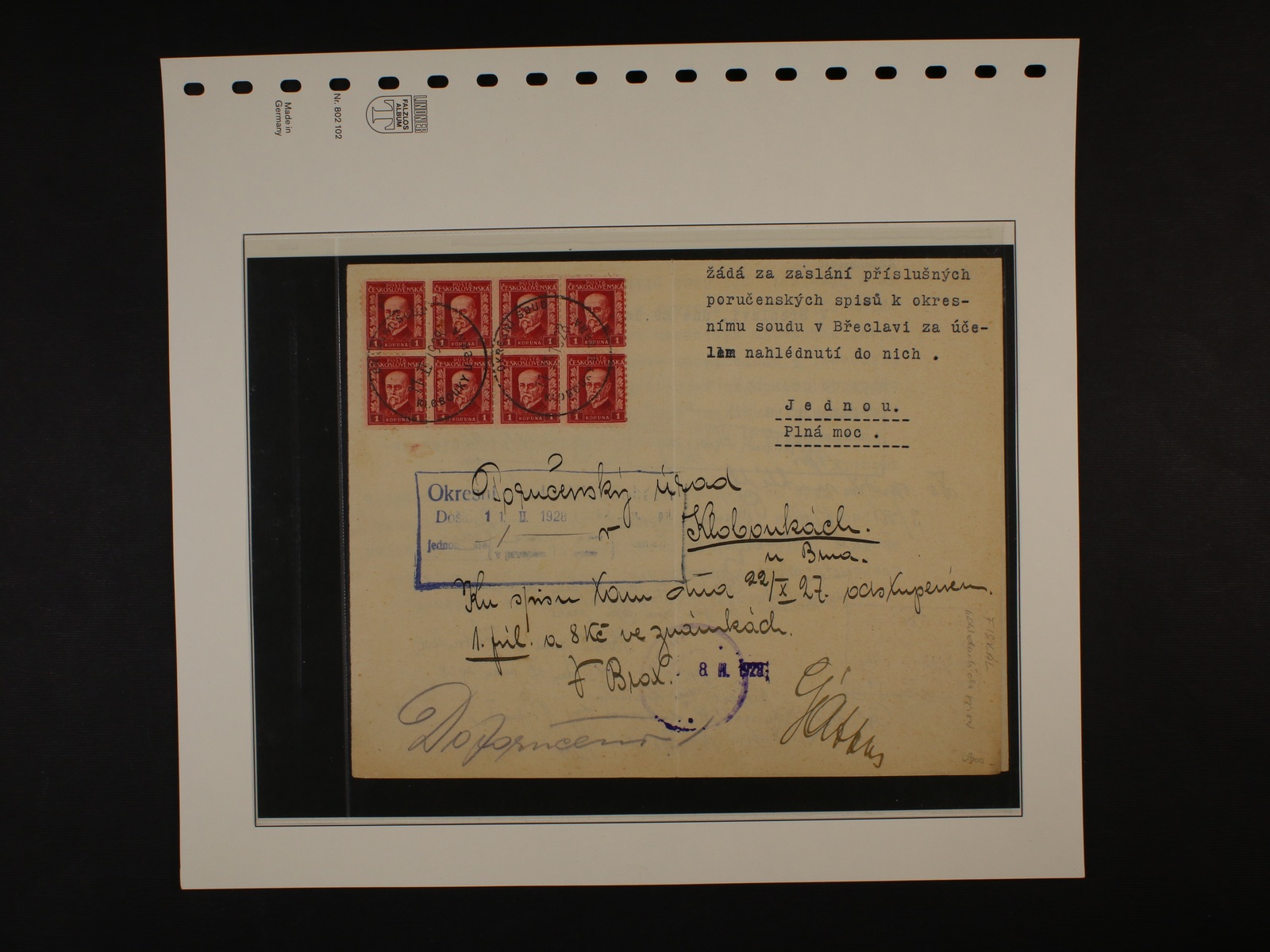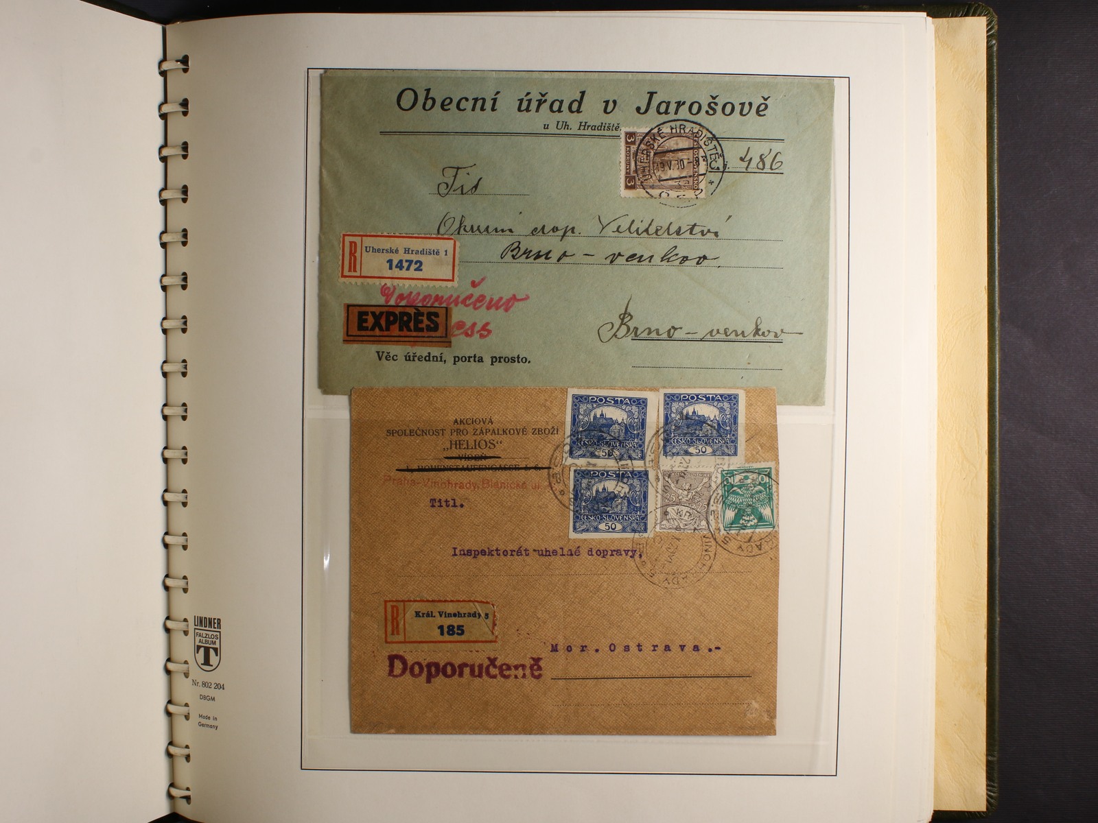 ČSR I - sbírka cca 120 ks celin a celistvostí, formulářů, mj. Nahlédnutí do soudního spisu, R a EXPRES dopisy, vč. několika z počátku ČSR II, zajímavé frankatury a raz., uloženo na listech Lindner v pérových deskách