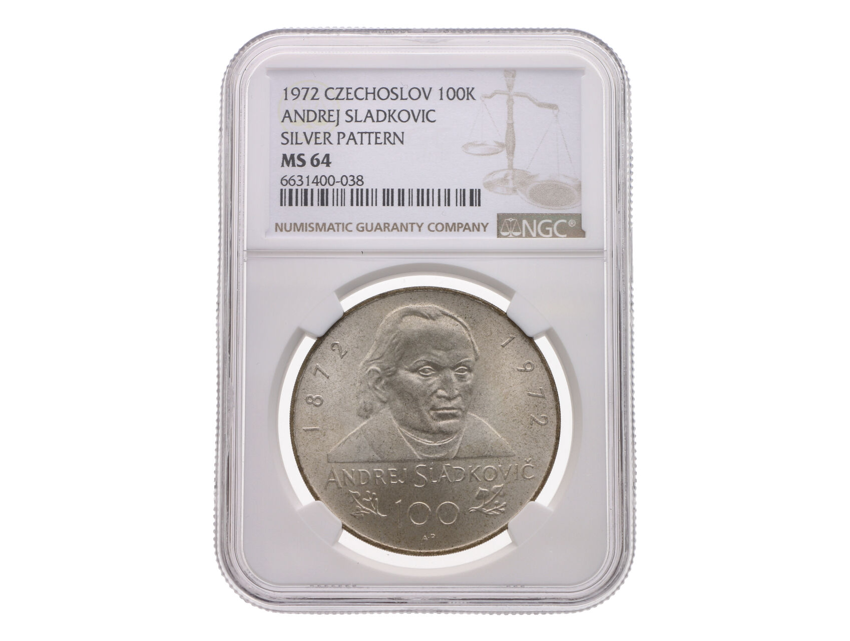 ČSSR 1953-1992 - nerealizovaný návrh na 100 Kčs 1972 Andrej Sládkovič, sign. ZK - Kolářský, kvalita b.k., Aurea M37, NGC MS64