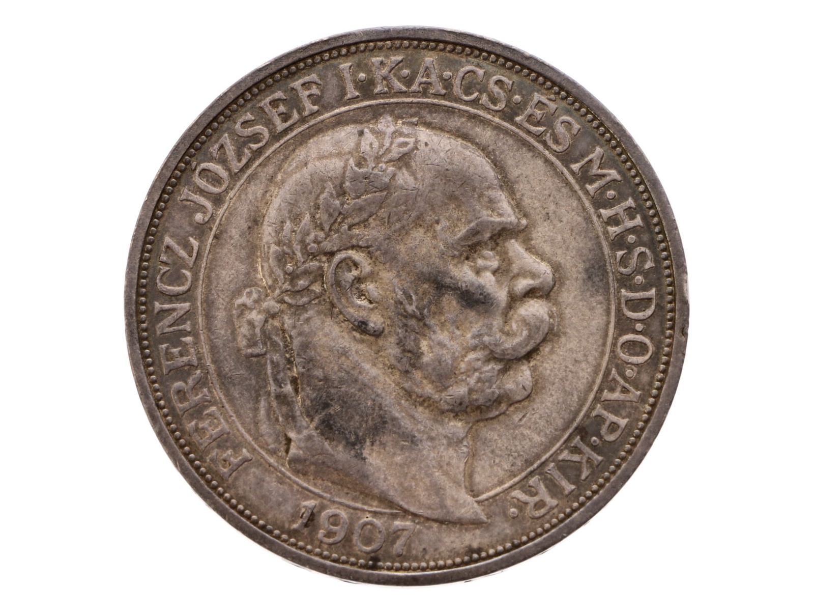 • František Josef I. 1848-1916 - 5 Koruna 1907 K.B. jubilejní, 40. výročí korunovace za uherského krále, N 158, RV 151, patina
