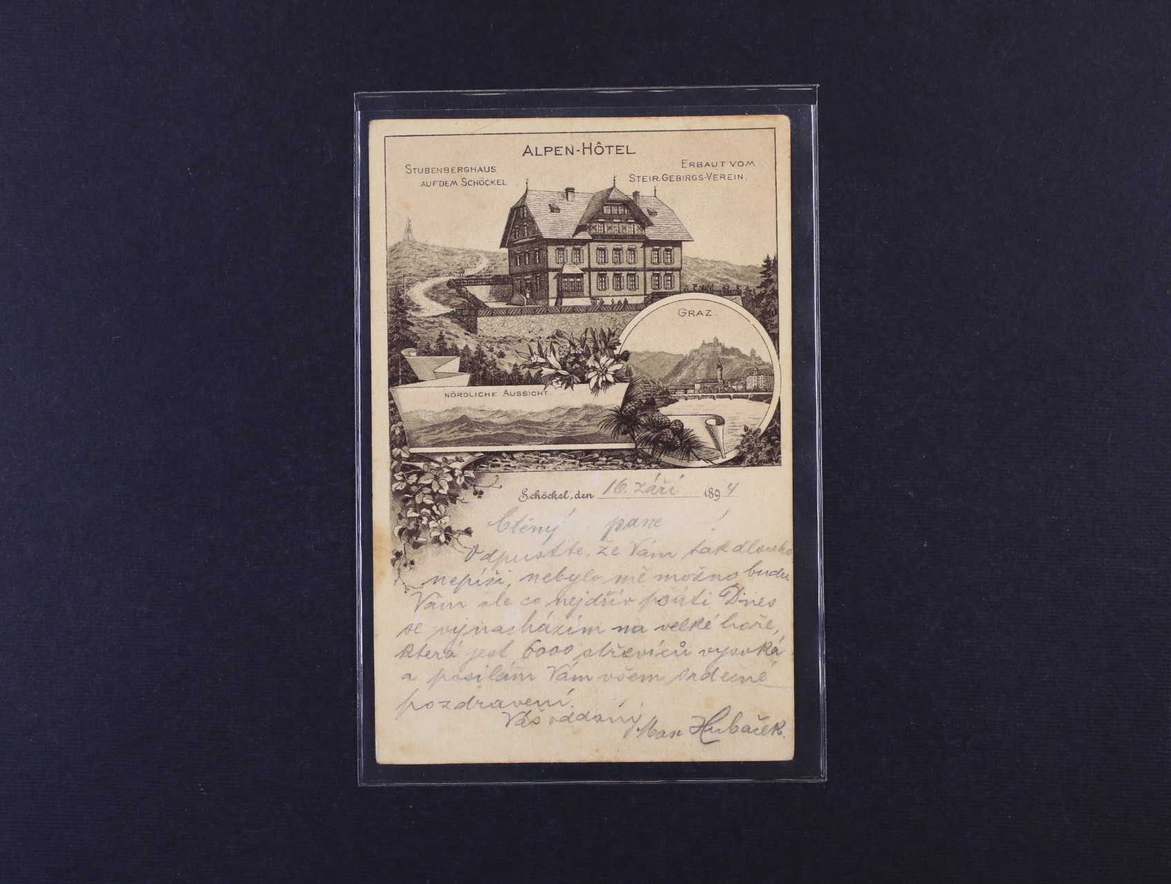• Gratz - jednobar. litograf. koláž, dl. adresa, použitá 1894