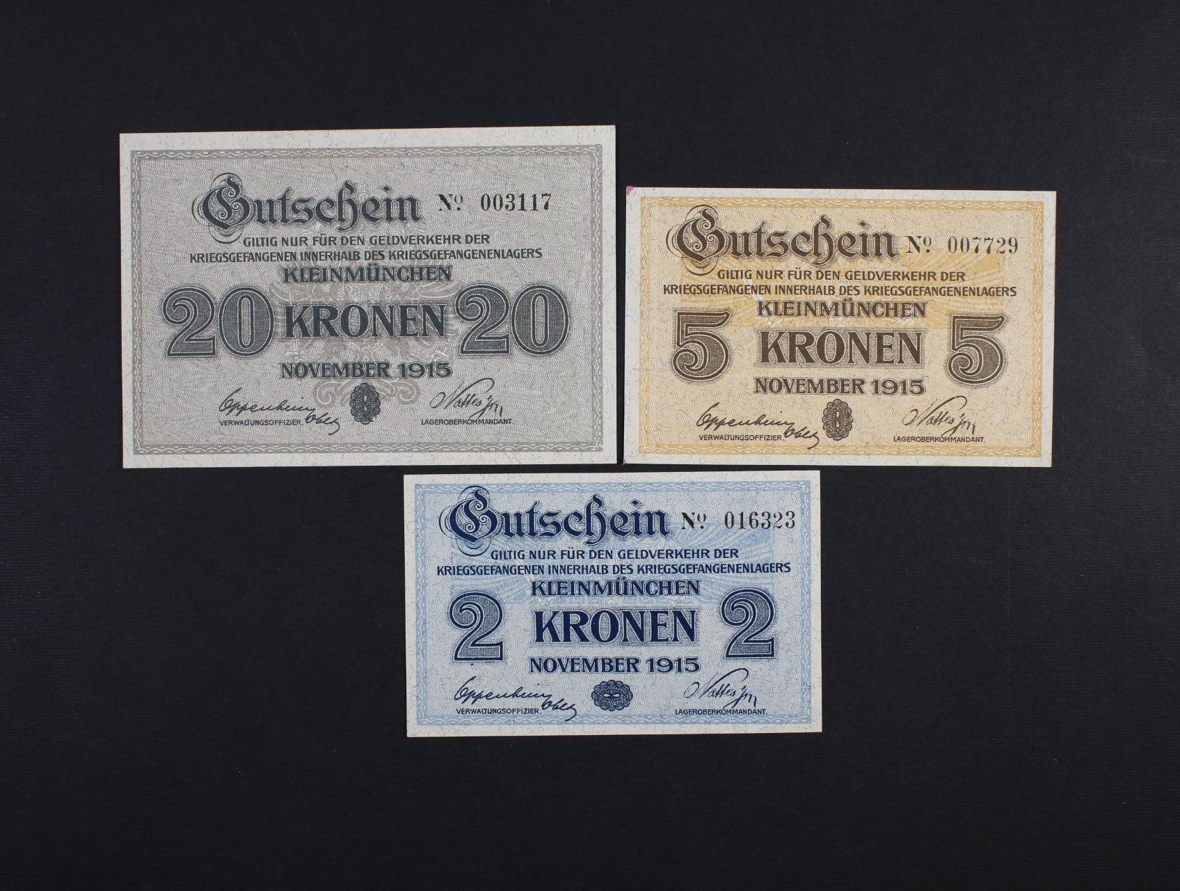 Kleinmünchen (Rakousko), 2 K, 5 K, 20 K 1915, Ri.25.II.a, b, d, 3 kusy