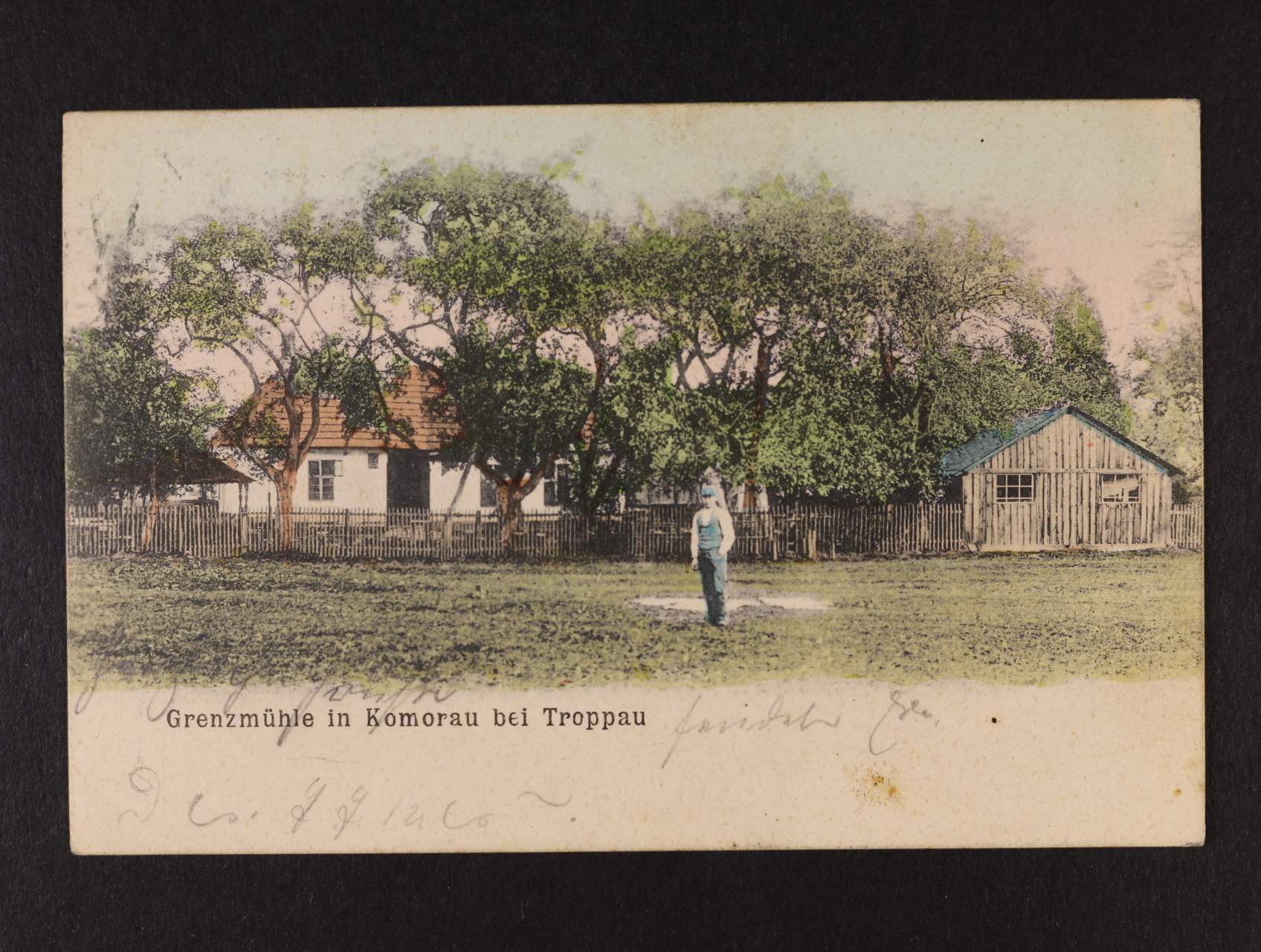 • Komárov, okr. Opava - barevná pohlednice, použitá 1909