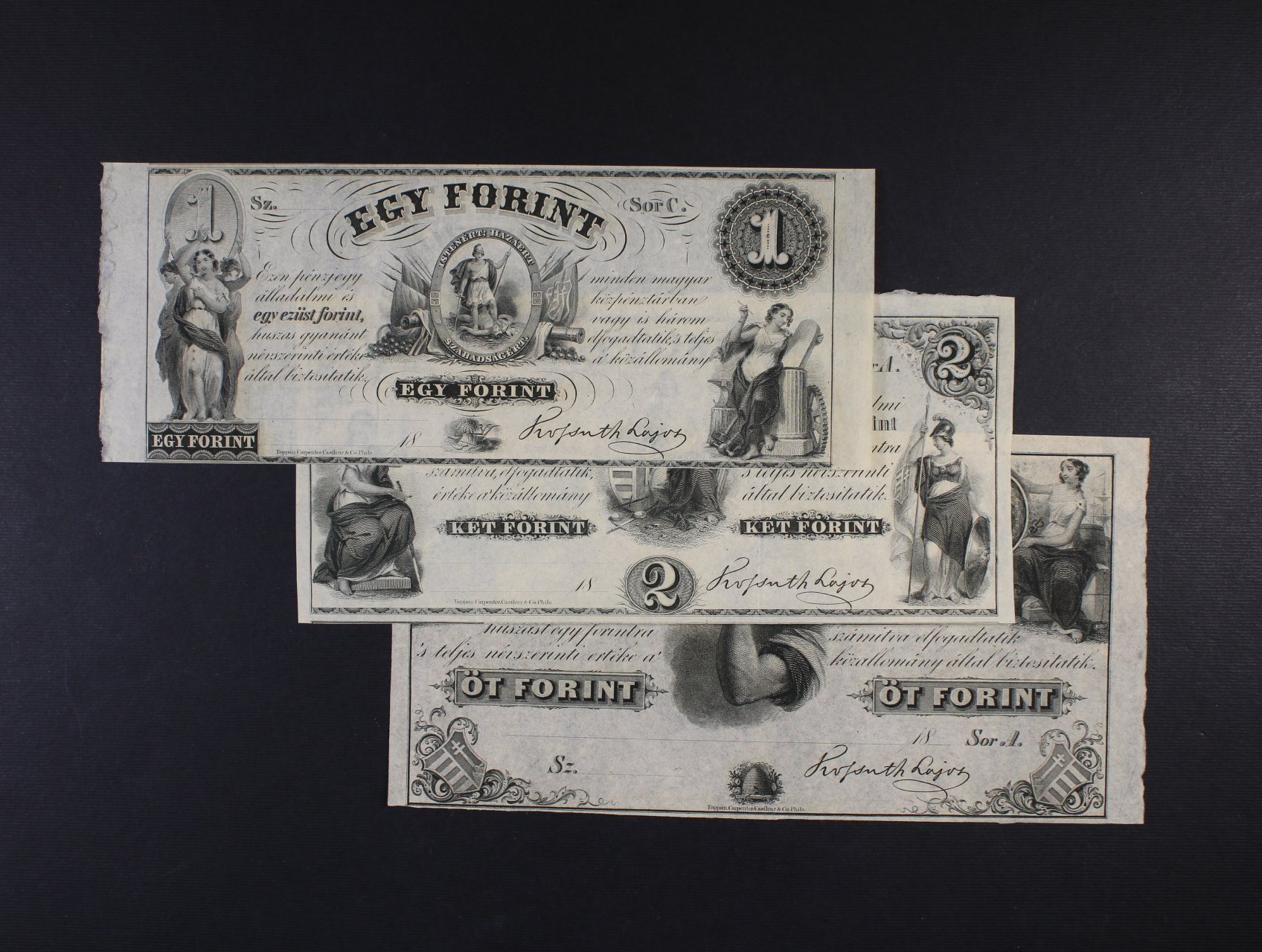 • Košutovo exilové vydání, 1 Forint série C, 2 Forint série A, 5 Forint 18xx série A, Ri. 429 - 431, 3 kusy
