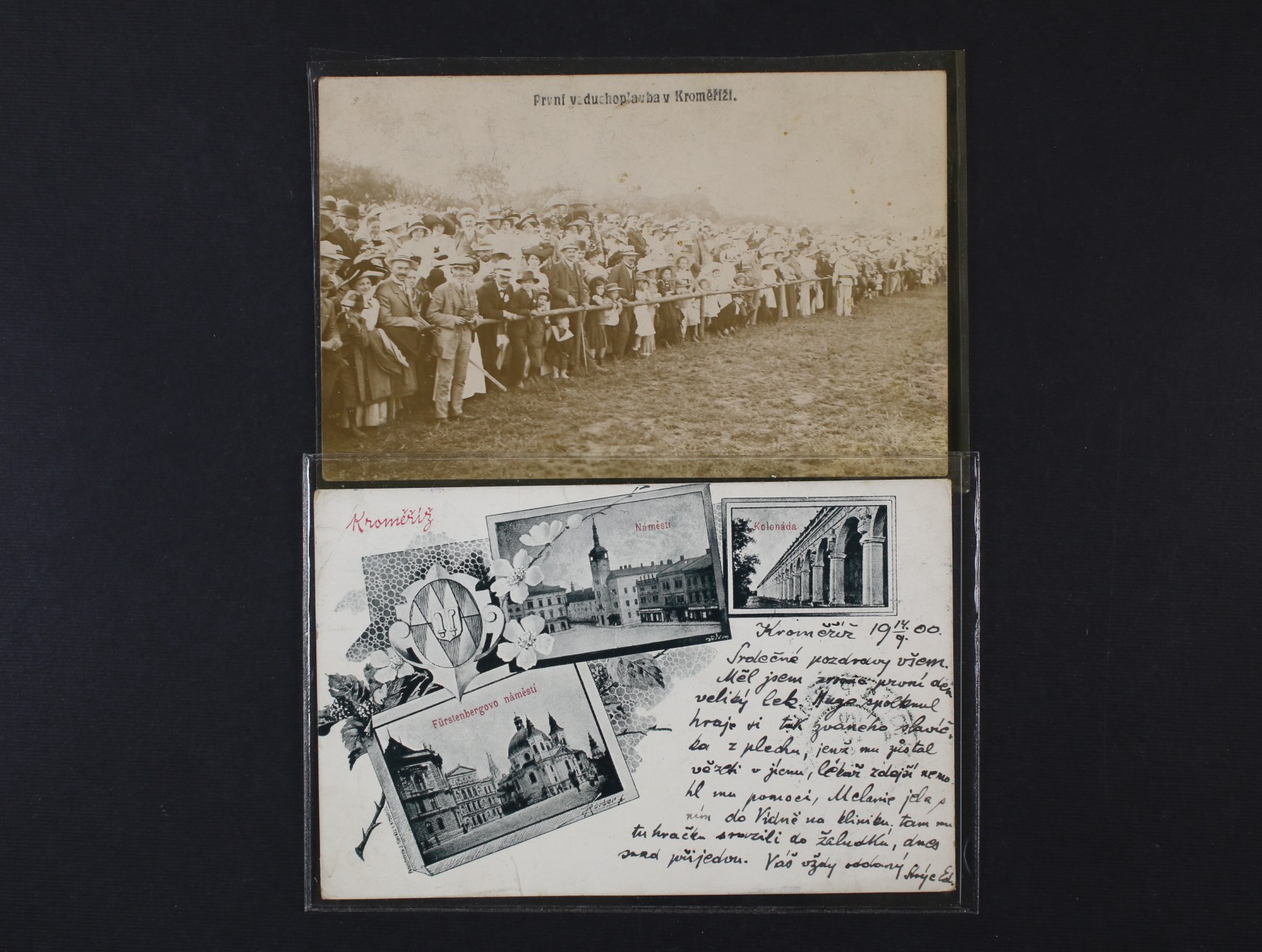 • Kroměříž - jednobar. okénková koláž, použitá 1900 + fotopohlednice 1. vzduchoplavba v Kroměříži, použitá