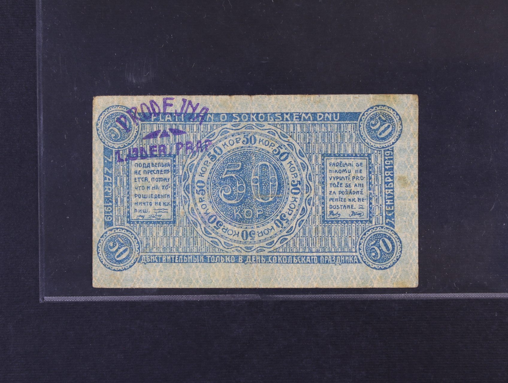 • Legionářské poukázky - Čs. legie v Rusku  Sokolský den, 50 Kop. 7.9.1919, na A i R fialové raz. PRODEJNA / 1. ÚDER. PRAP, Vlček 4/1a