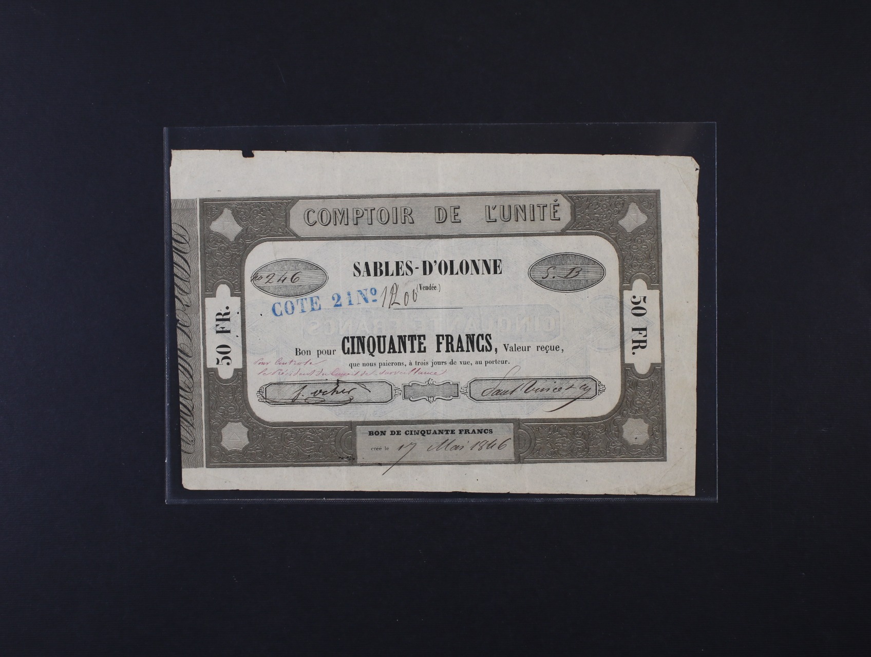 • Les Sables - d’Olonne, poukázka na 50 Franků 17.5.1846