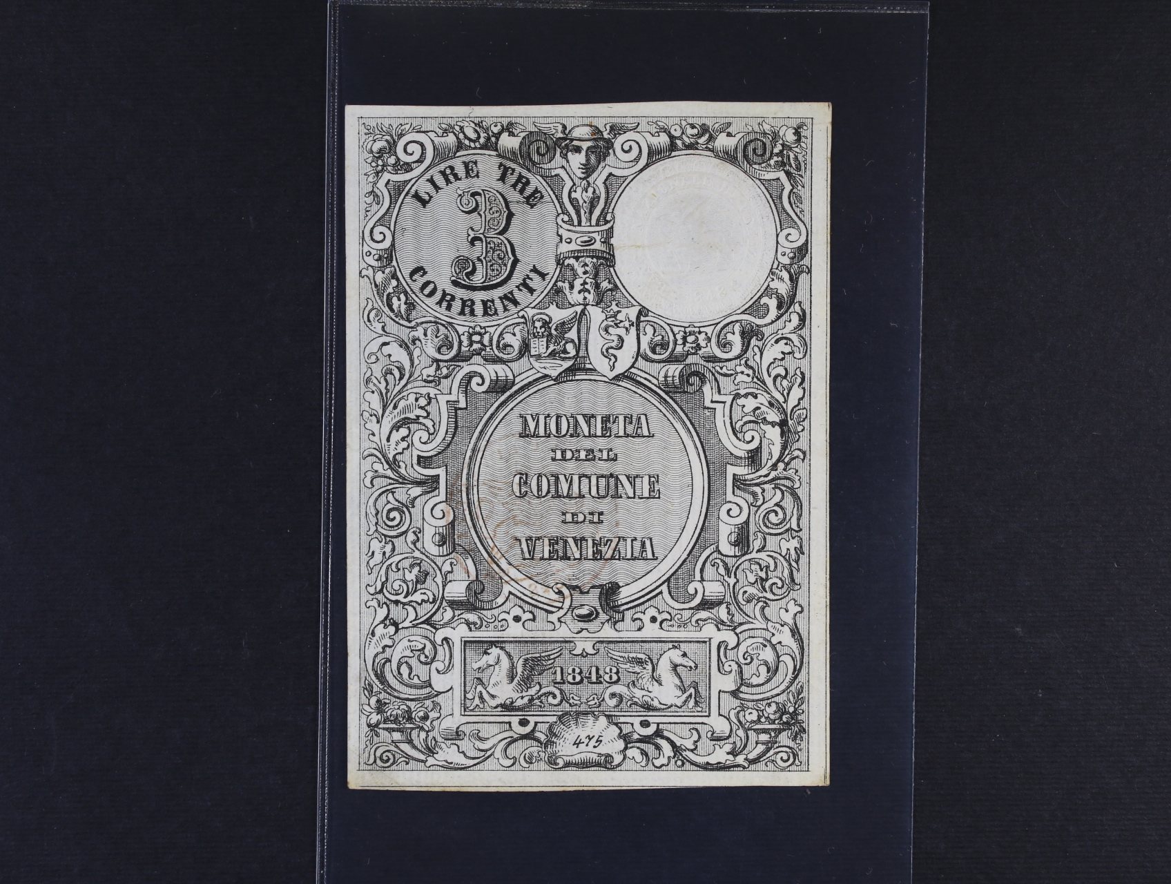 • Lombardsko - Benátsko, 3 Lire correnti 1848 - I.vydání, Moneta del Comune di Venezia, Ri. 510, Pi. S193