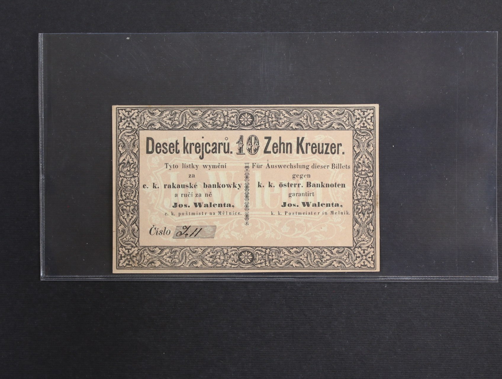 • Melnik (Mělník), 10 kr. C.M. b.d Jos. Valenta, V.R. 840.26.03.I.b.F