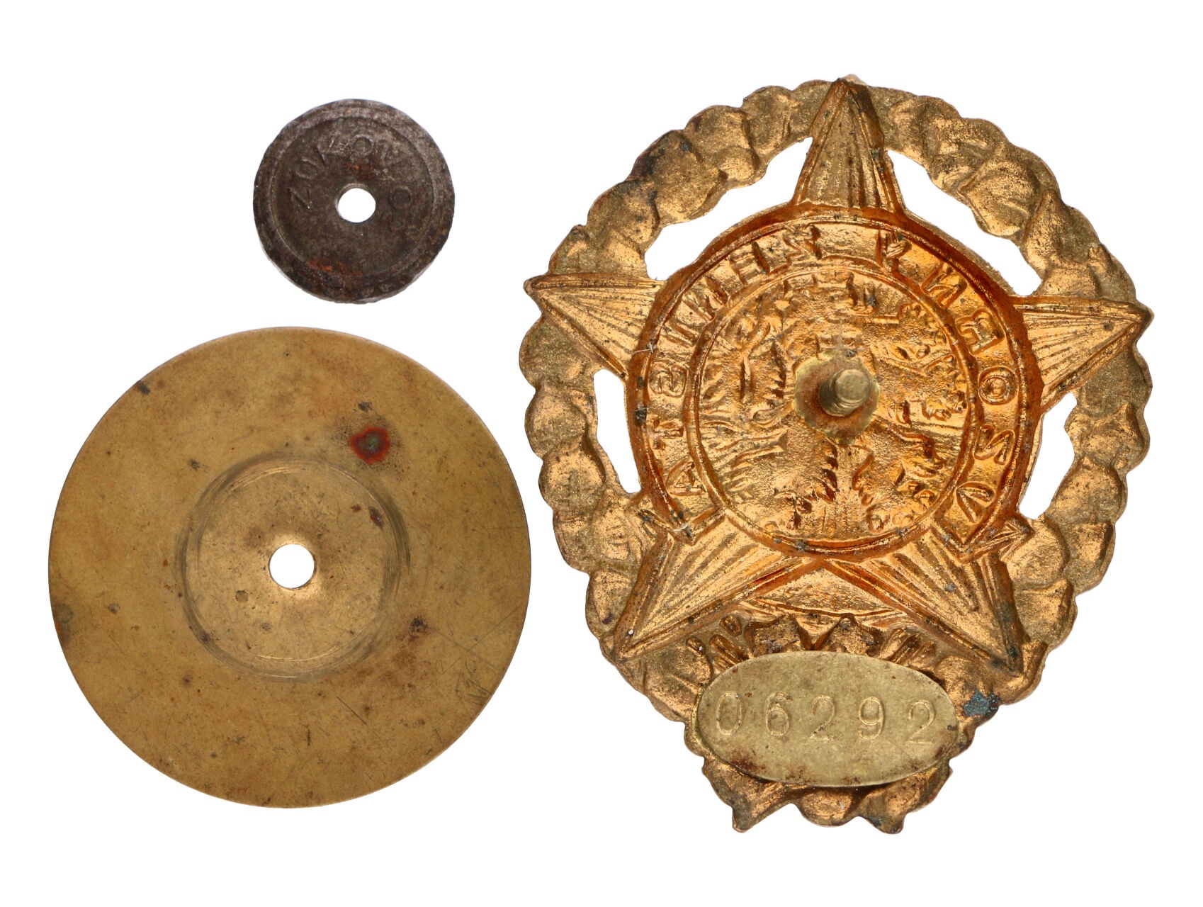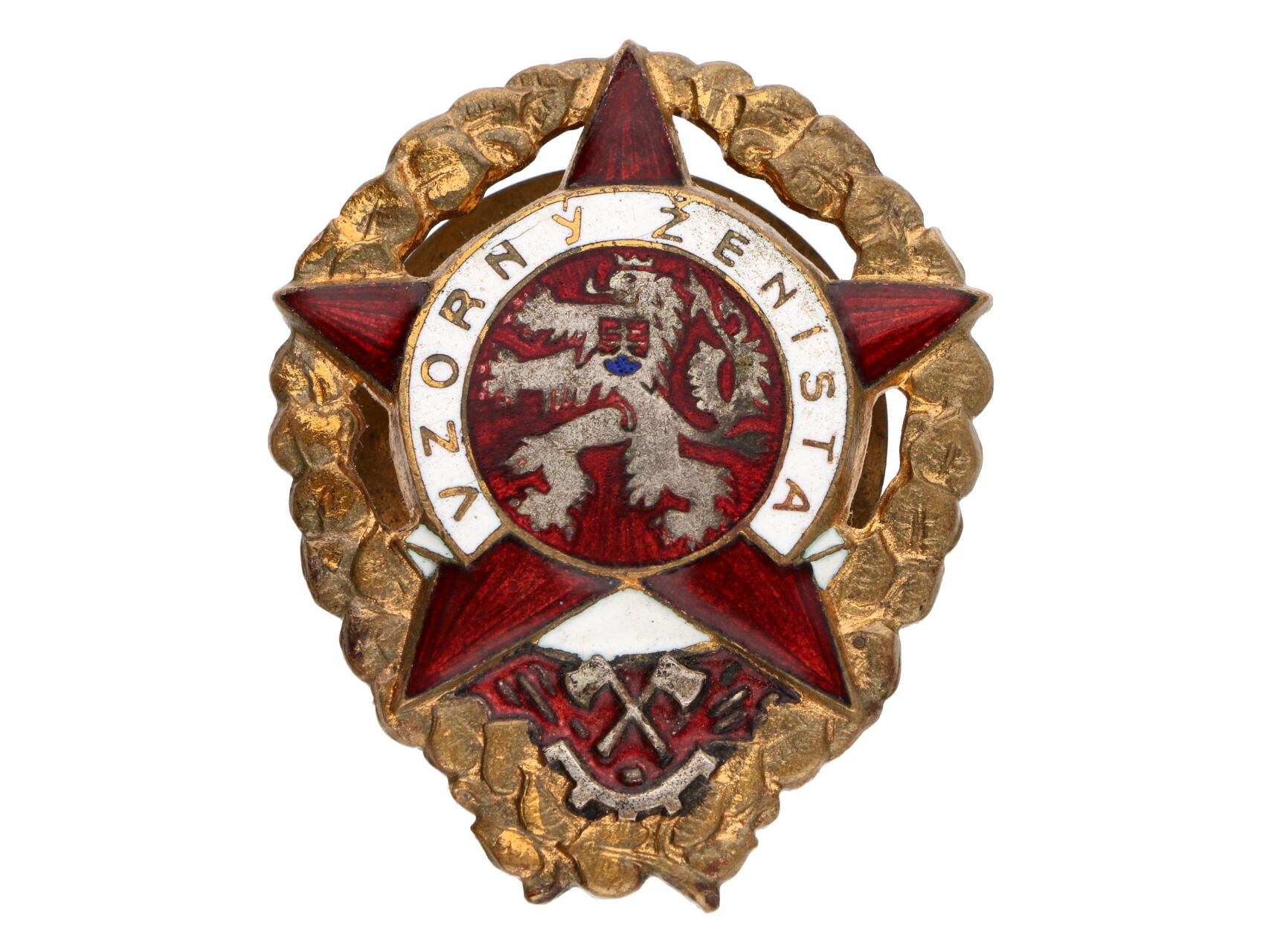 • Odznak Vzorný ženista č. 06292, pozlacený bronz, smalty