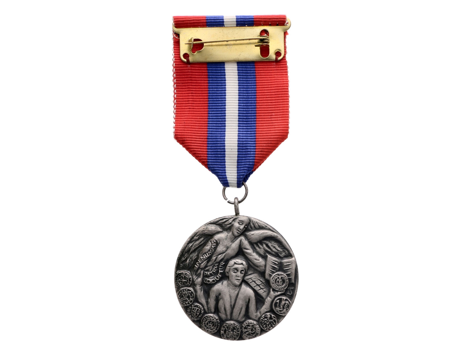 Orlická numismatická společnost - AR medaile 2003 k 10. výročí ONS na stuze. Stříbro 40 mm, 60,69 g. (64,24 g. se stuhou), na hraně punc Ag a ryzostní značka 925, náklad 25 ks., signováno LŠ (Lumír Šindelář), F.C17/14a