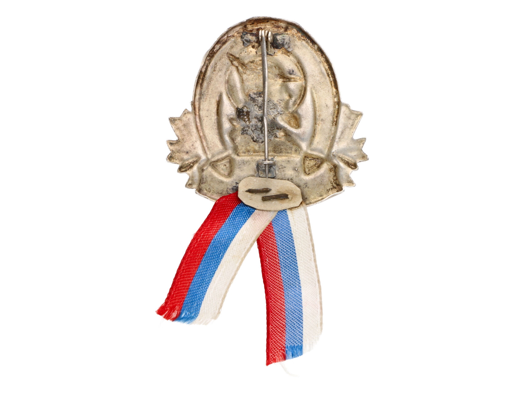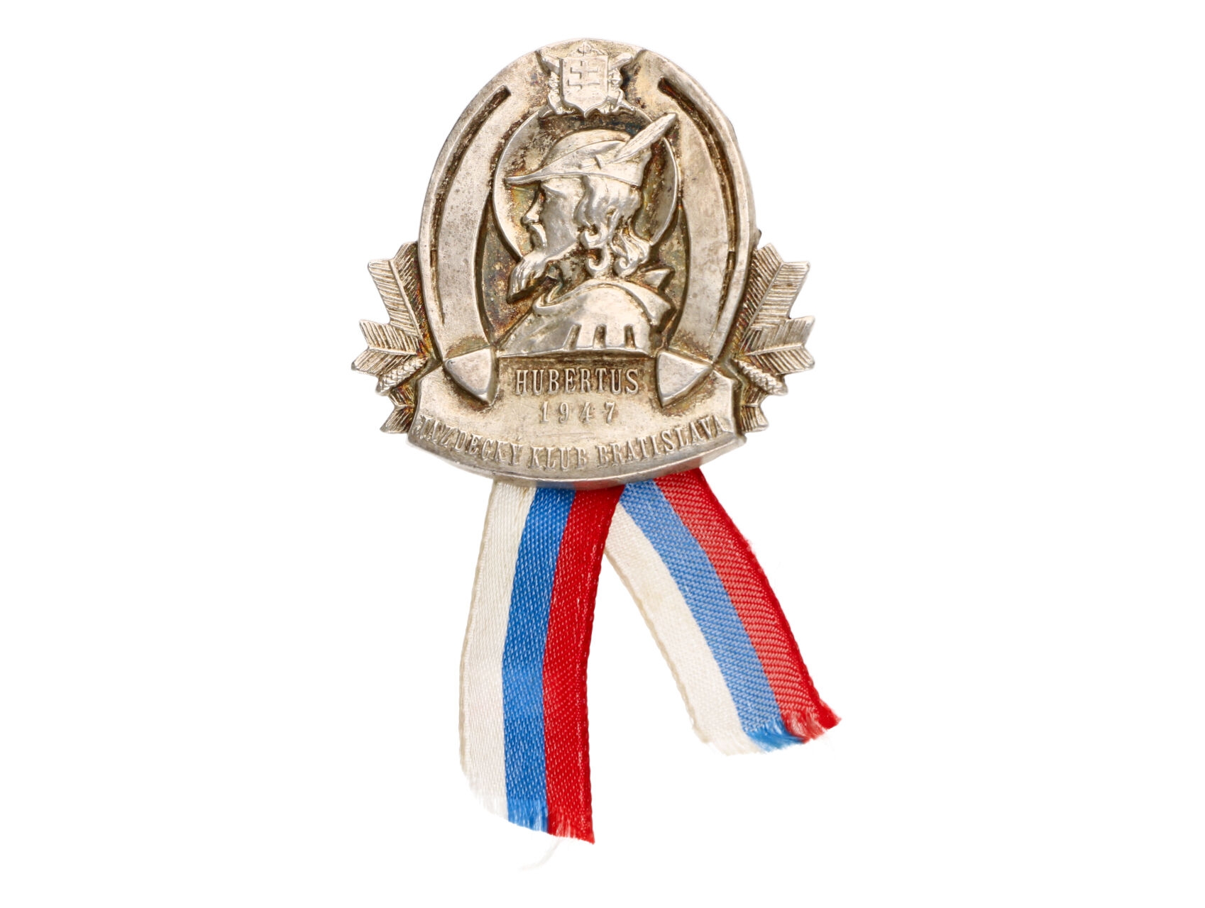 • Pamětní odznak jezdeckého klubu v Bratislavě 1947, postříbřený bronz, 50x50 mm, upínání na svislu jehlu