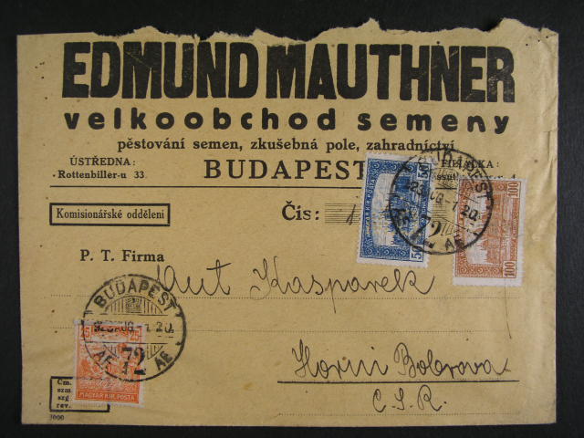 • Perfiny Madarsko - sestava 7 ks celistvosti z ket 1920 - 23 frank. zn. s ruznymi identifik. perfiny