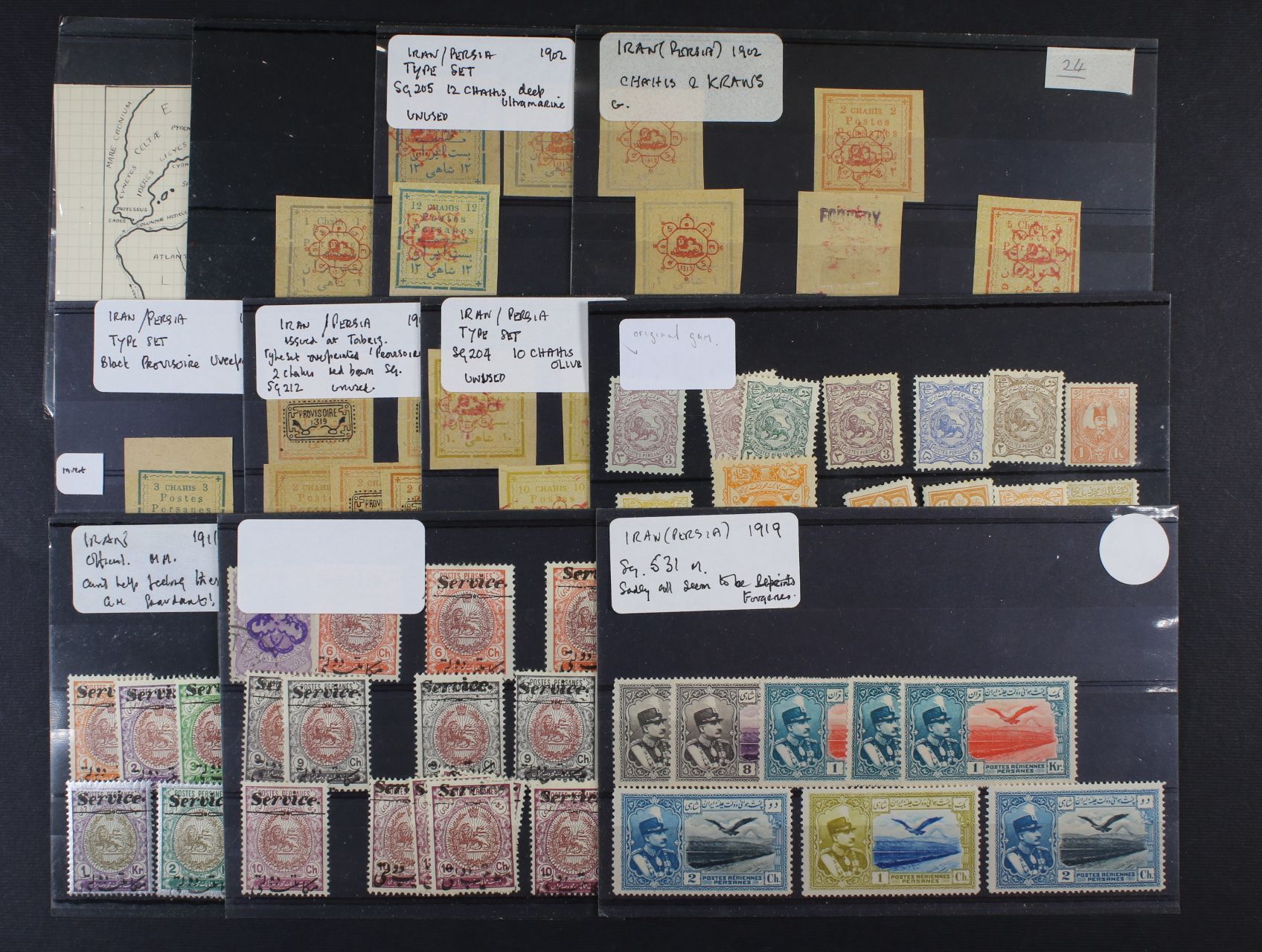 Persie - Irán - sbírka převážně klasických zn. z let 1900 - 1919 na 23 destičkách Hewid, k prohlédnutí