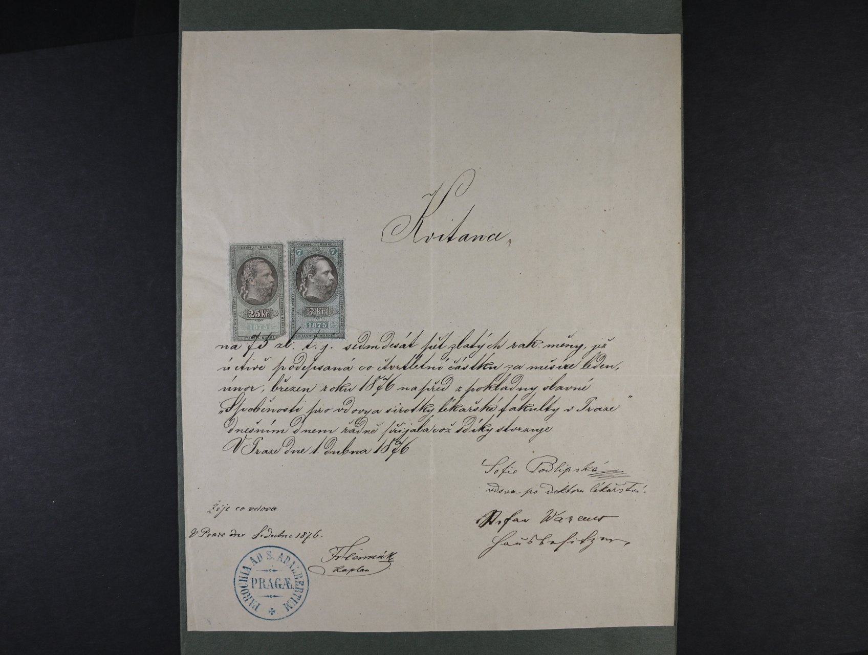 • Podlipská Žofie 1833 - 1897, česká spisovatelka - kvitance s vlastnoručním podpisem