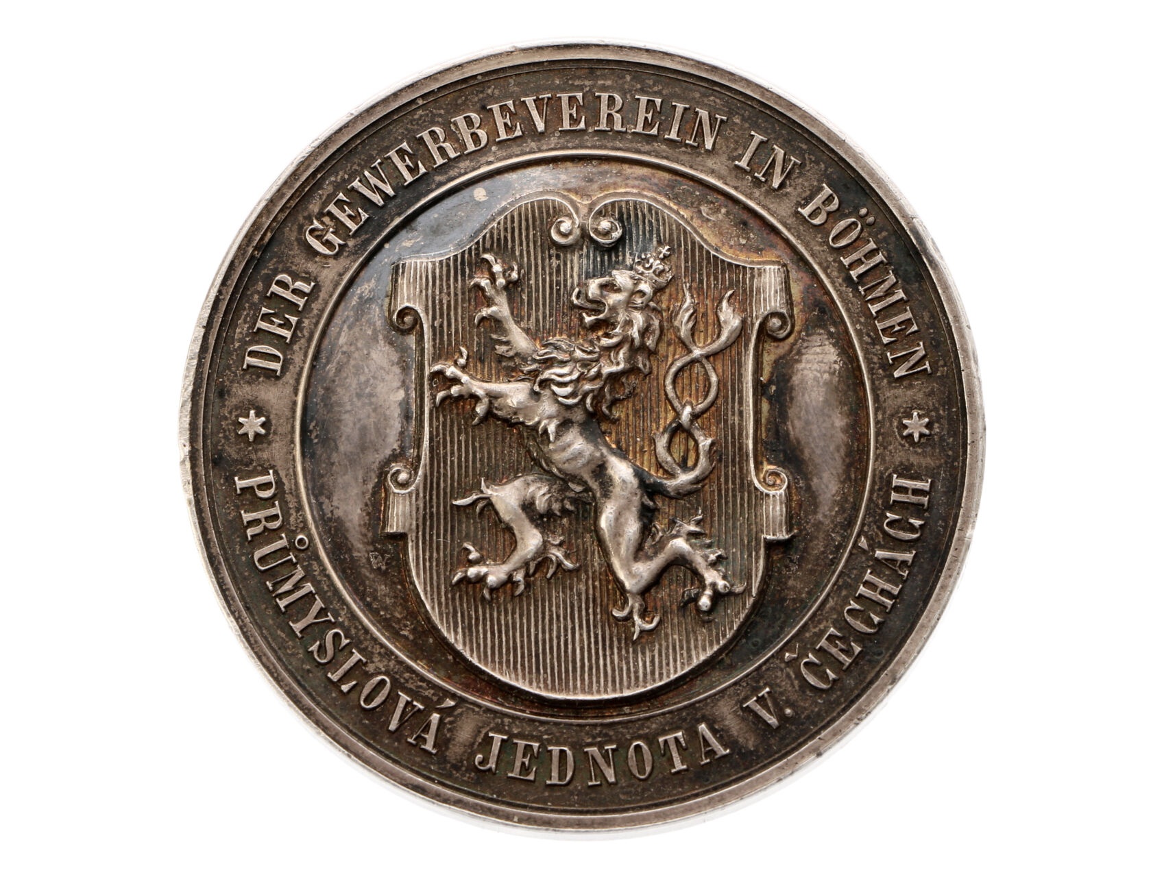 • Praha - AR Medaile Průmyslová jednota v Čechách, na R věnování Václav Mokrý, stavitel kočárů Vinohrady 1896, 41,4g, 40 mm