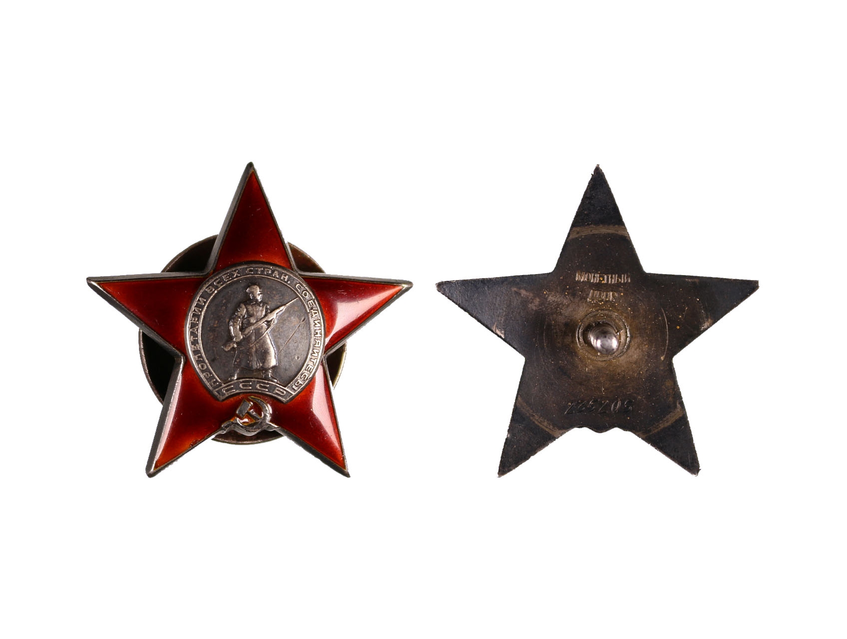 • Řád rudé hvězdy č.235205,  4. typ, 3. varianta, značeno Monetnyj Dvor, stříbro, mírně poškozený smalt v levém spodním rameni hvězdy,