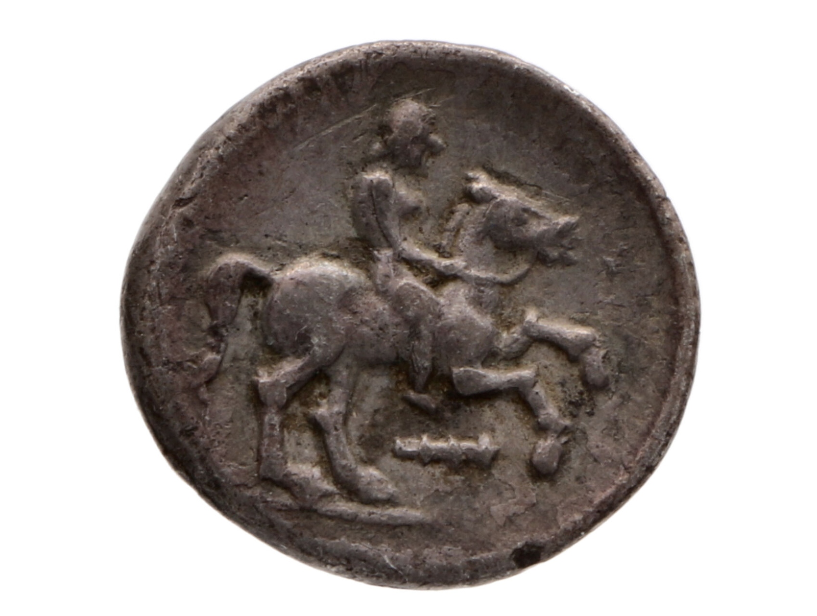 Řecko, Makedonie, Filip II. - AR Tetradrachma, Amfipolis, cca 316 až 294 př. n. l. vydaná posmrtně pod Kassandrem. Hlava Apollóna obrácená doprava, uvnitř tečkovaného okraje / Filip II. na koni otočený doprava s kyjem pod ním. 2,14 g.