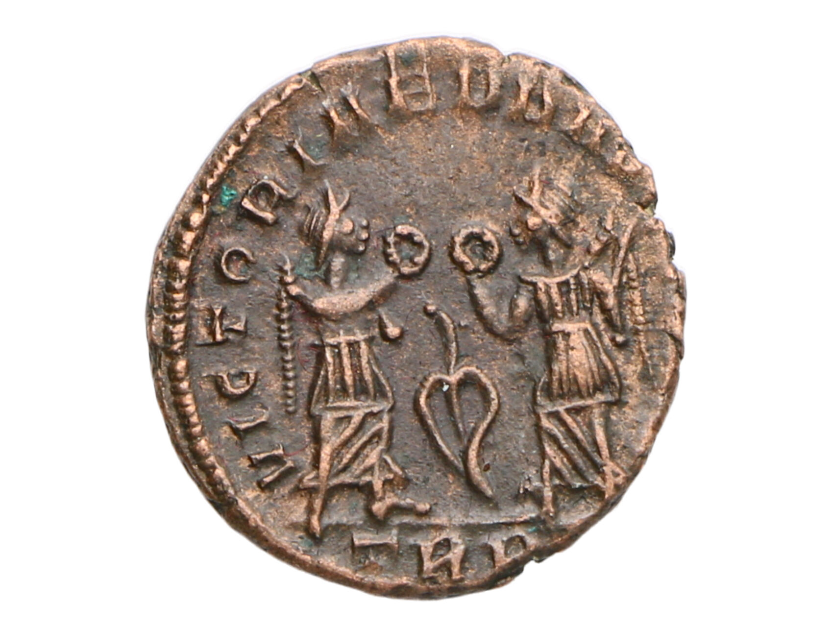 Řím císařství, Constantius II. jako Augustus 337-361 - Follis. Panovníkovo poprsí s diadémem vpravo, CONSTAN S P F AVG / dvě Vítězství proti sobě držící věnce, VICTORIAE DD AVGGQ NN. 1,58 g, KAMP 147.102